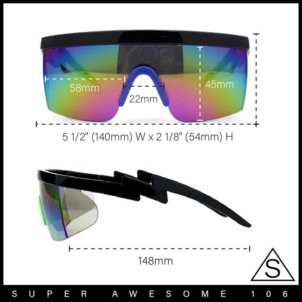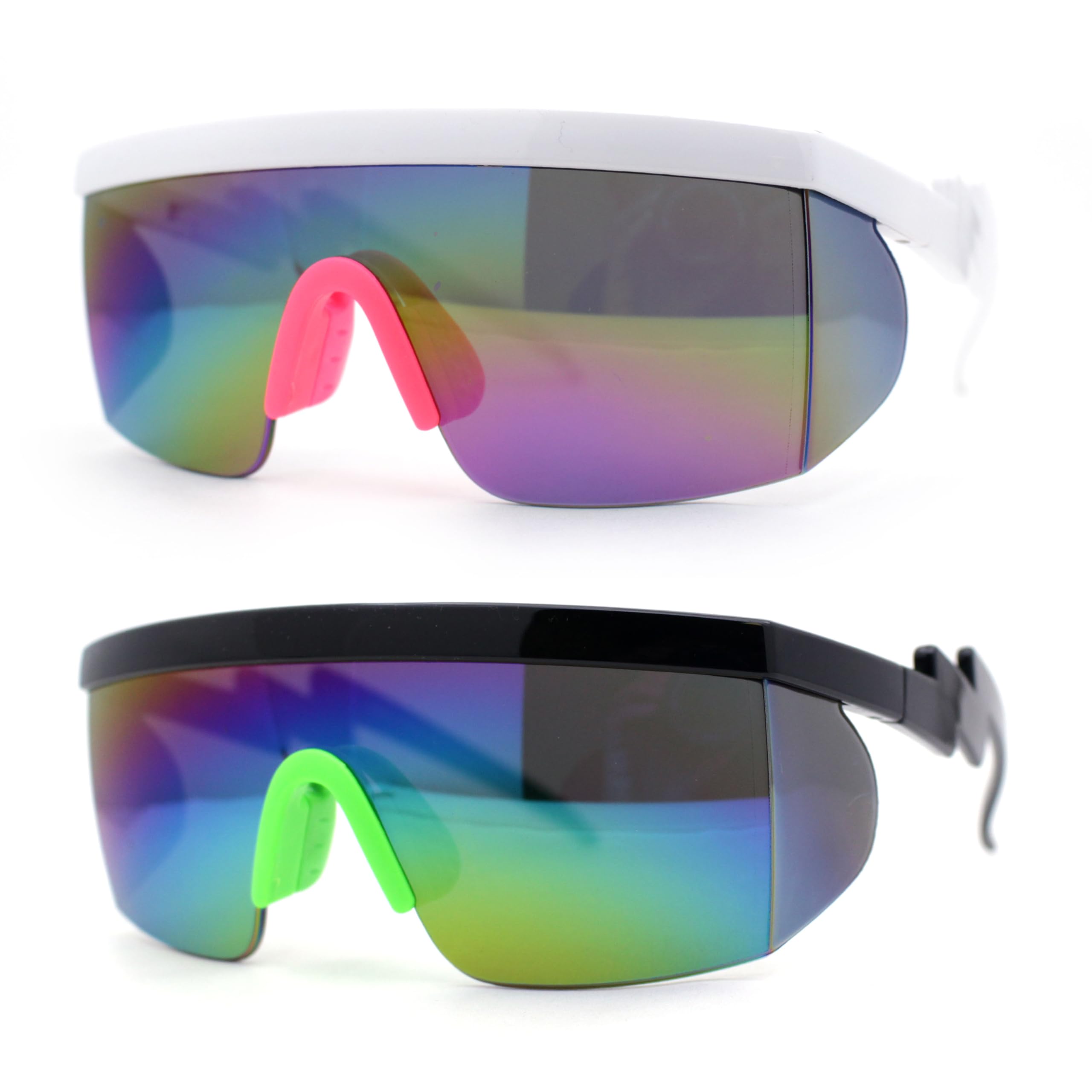Description Unisex funk plastic safety goggle style rectangular side visor exposed lens half rim large sunglasses. (ss7379rv)