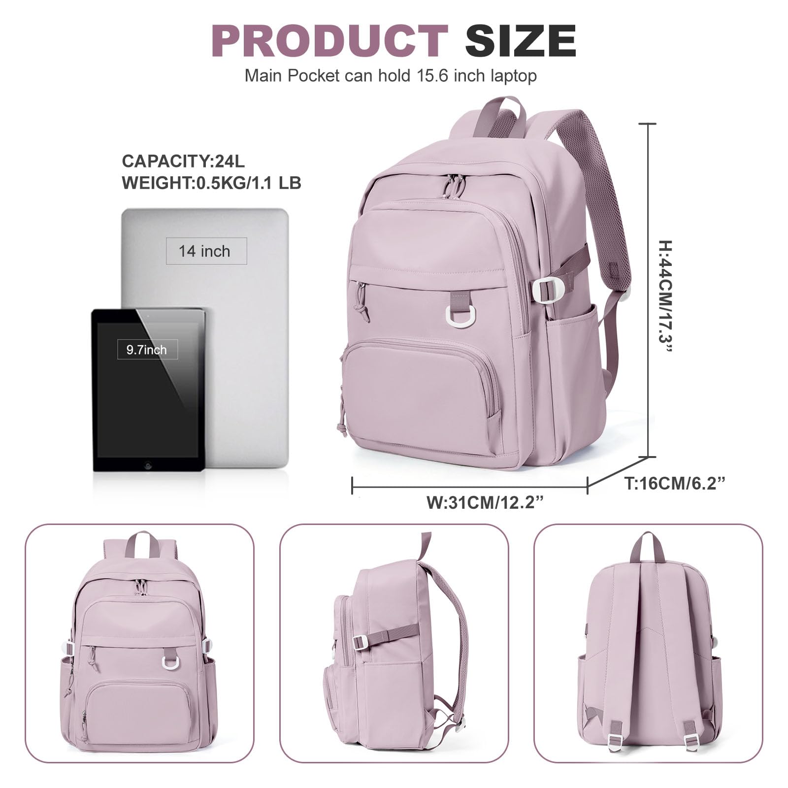 College Student Backpack Size】The backpack measures 13.38 “x18.5 ”x6.69" (W*H*D), Weight: 1.49LB.The backpack is available in six colors.