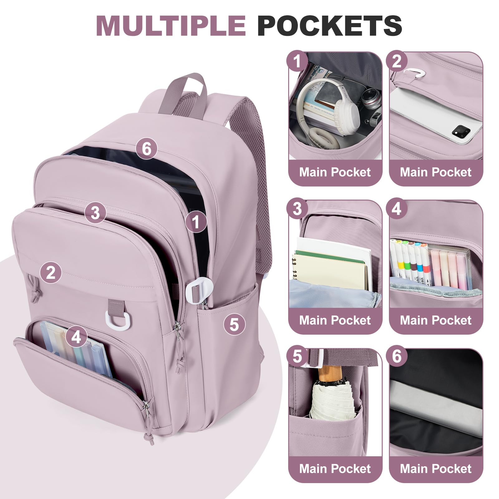 EXTRA LARGE CAPACITY】 This backpack offers plenty of storage space, perfect for everyday use. The backpack has four pockets of varying sizes to keep your laptop, iPad, mobile power, camera, books, and anything else you need to keep your belongings organized. In addition, there is a separate computer compartment in the main pocket that can hold up to a 15.6-inch laptop.