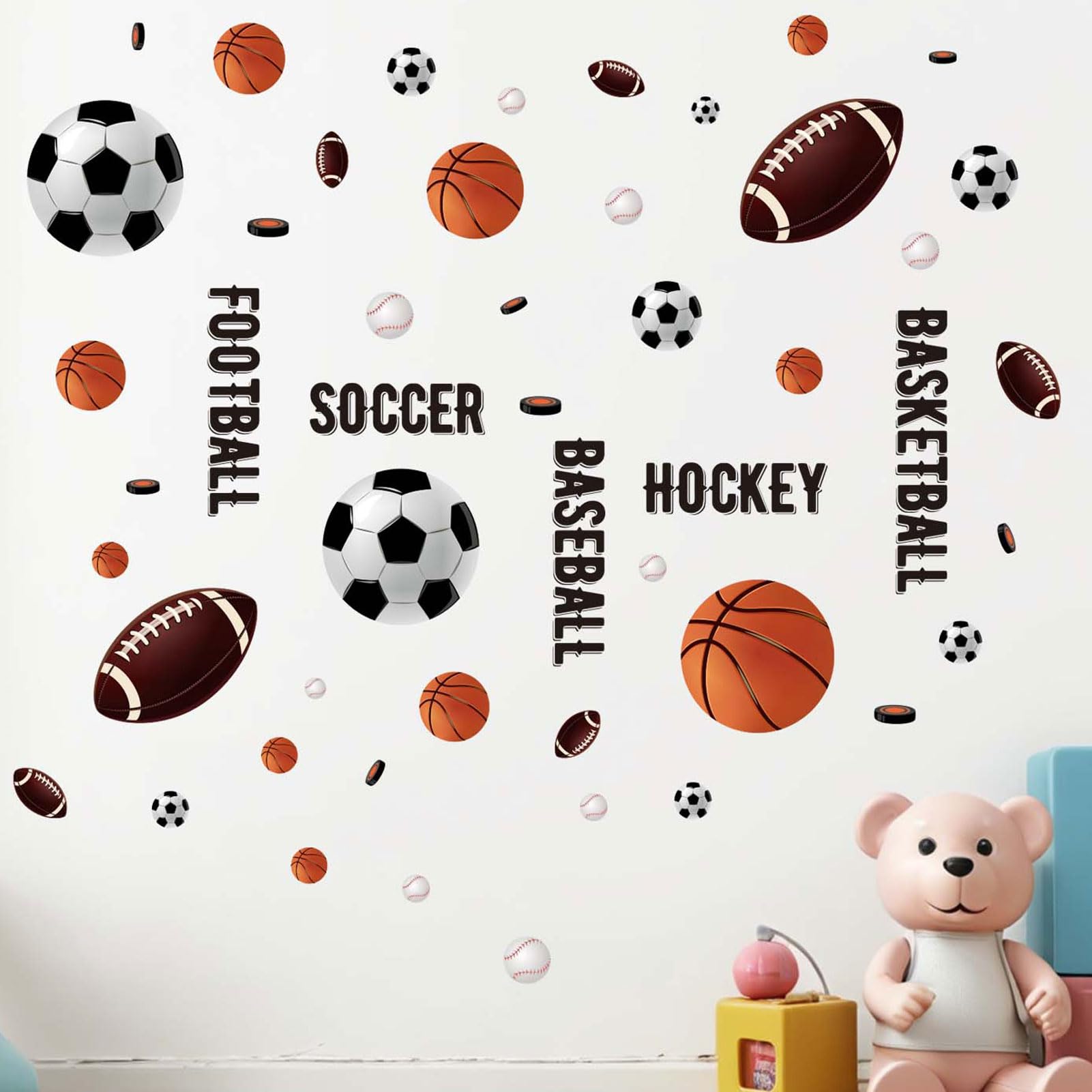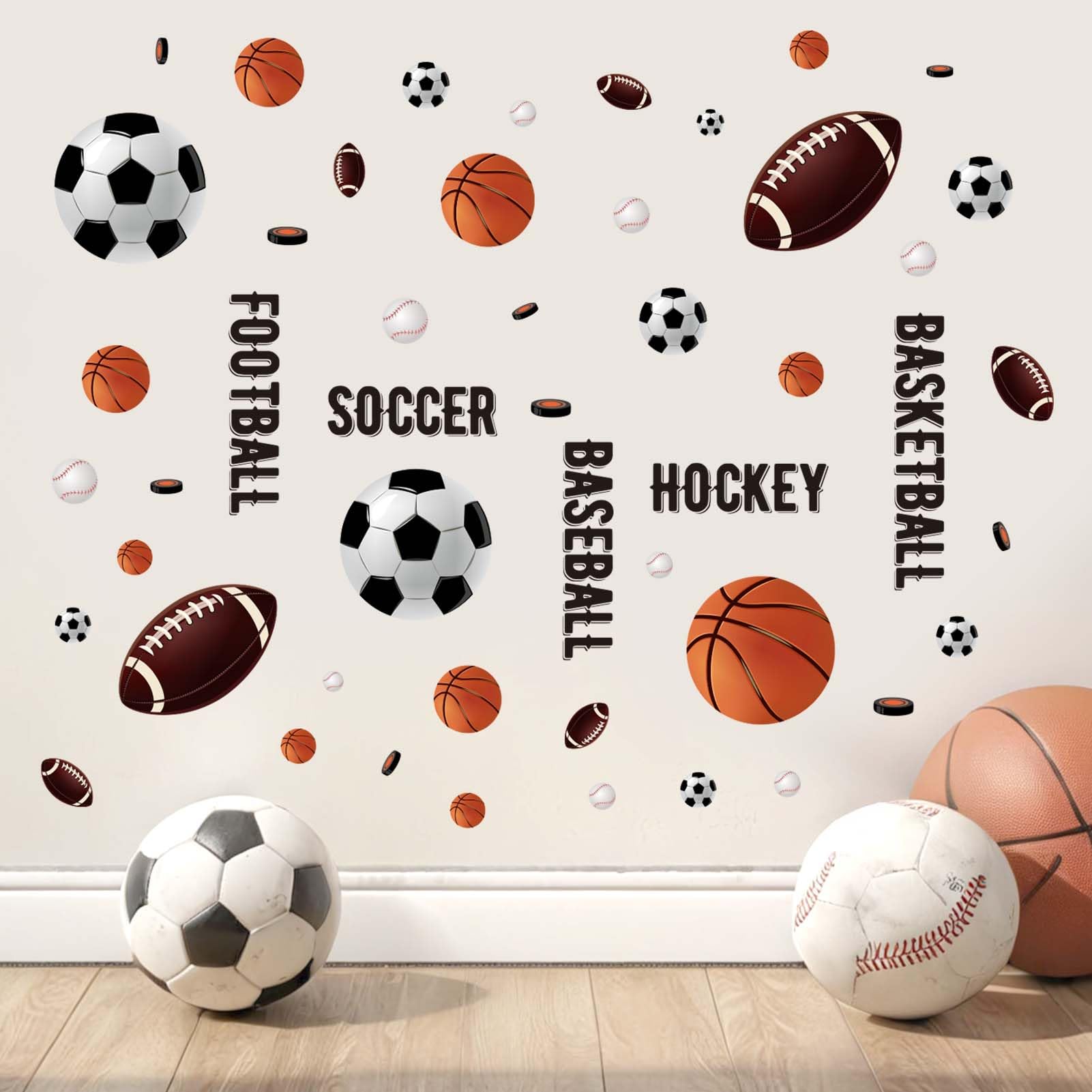 Amimagen Basketball Football Soccer Sports Wall Stickers - Kids Baby Boys Wall Decals - Nursery Playroom Classroom Daycare Game Room Bedroom Home Wall Decor