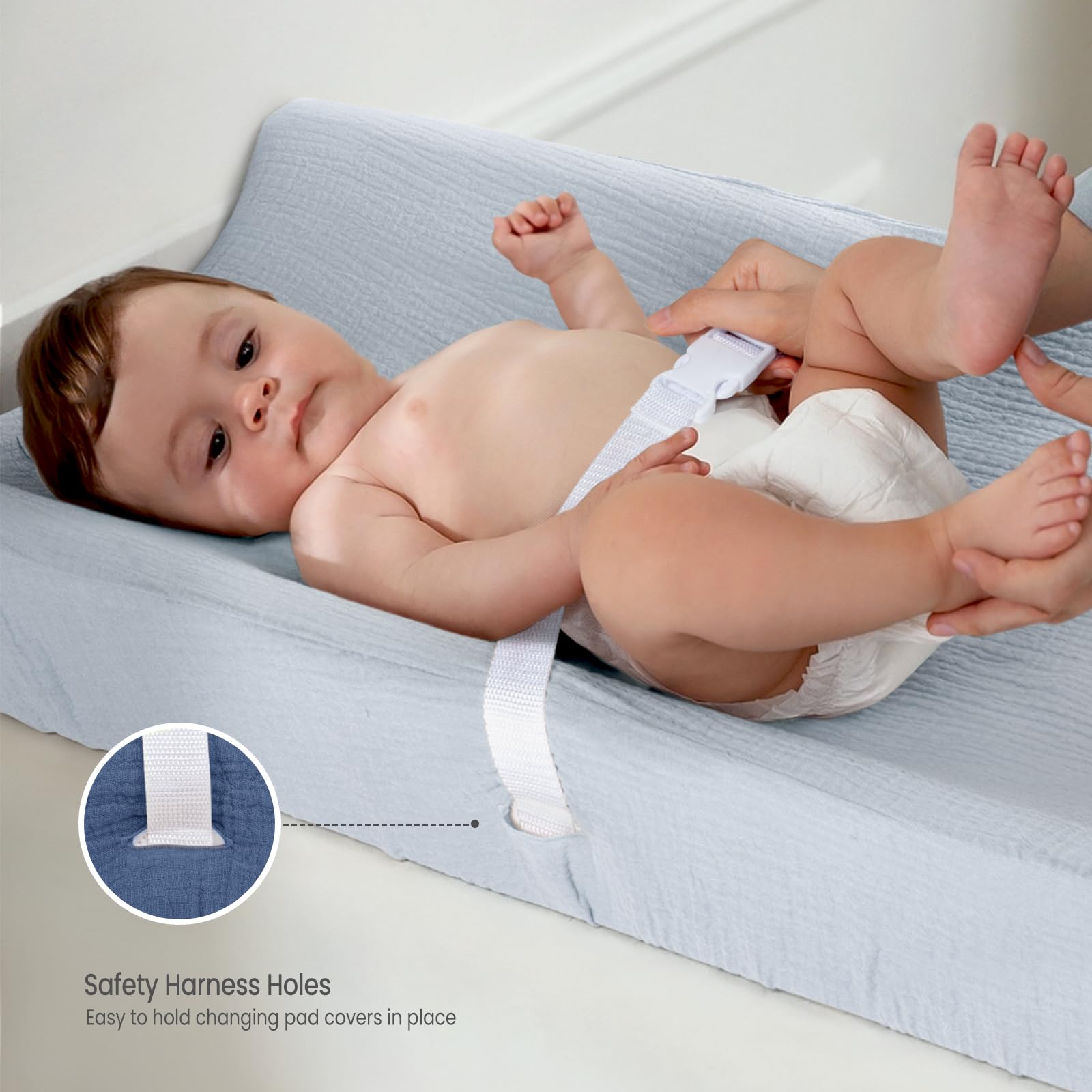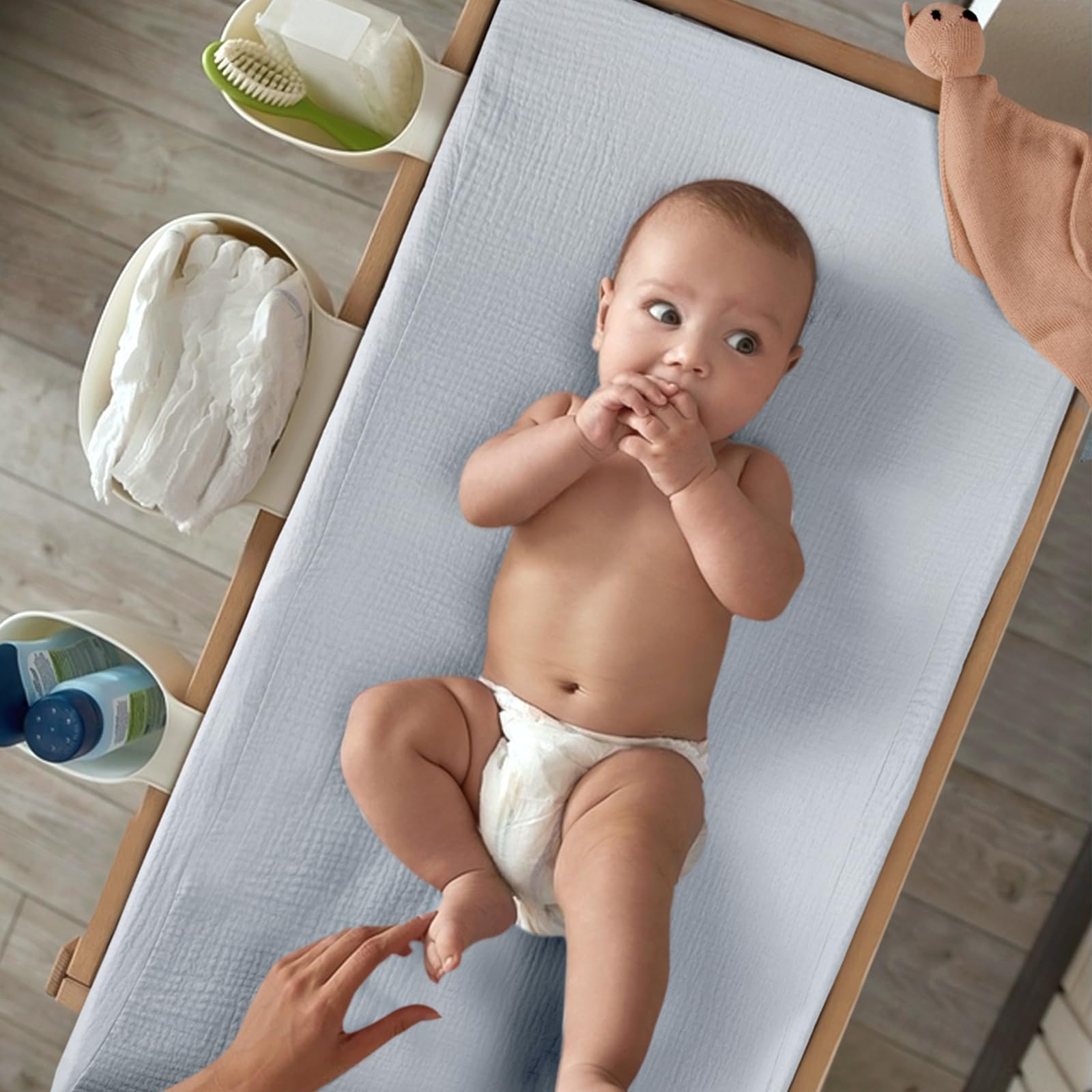 SOFT AND BREATHABLE: Our changing pad covers is made of 100% muslin cotton. The touch is soft and comfortable, which is very suitable for infant sensitive skin. Lightweight and breathable fabric will keep your baby cool and comfortable.