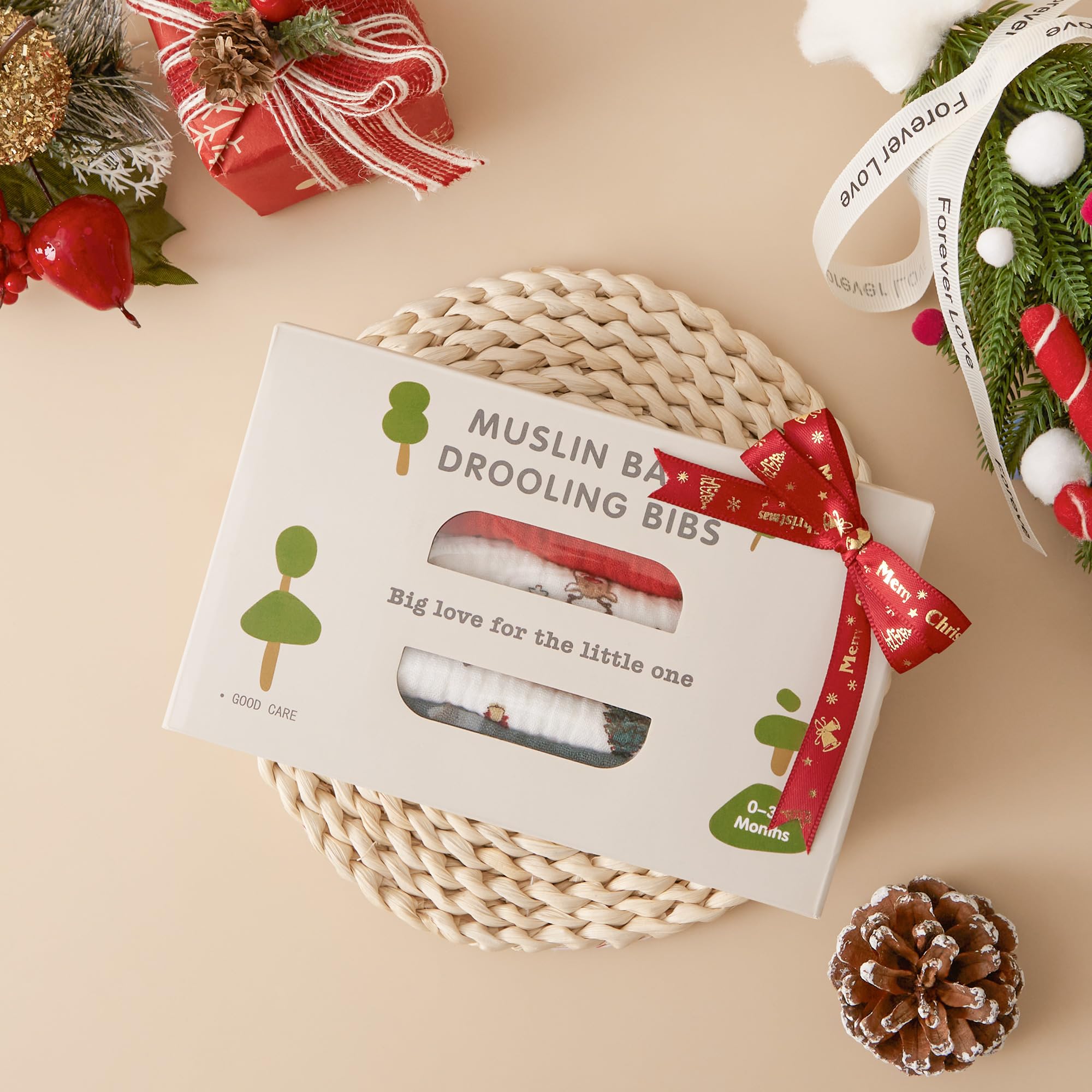 đ5 Festive Designs + 1 DIY Blank Baby BibsââLittle Blessing, Christmas Tree Print, Cozy Brown, Merry Green, and Reindeer Print. DIY Blank Baby Bibs - Personalize it yourself! Add your babyâs name, a special date, or a festive message with DIY embroidery. Make it truly one-of-a-kind! Note: The white bib is left plain intentionally for those who love crafting! We do not offer embroidery services â but we canât wait to see what you create!