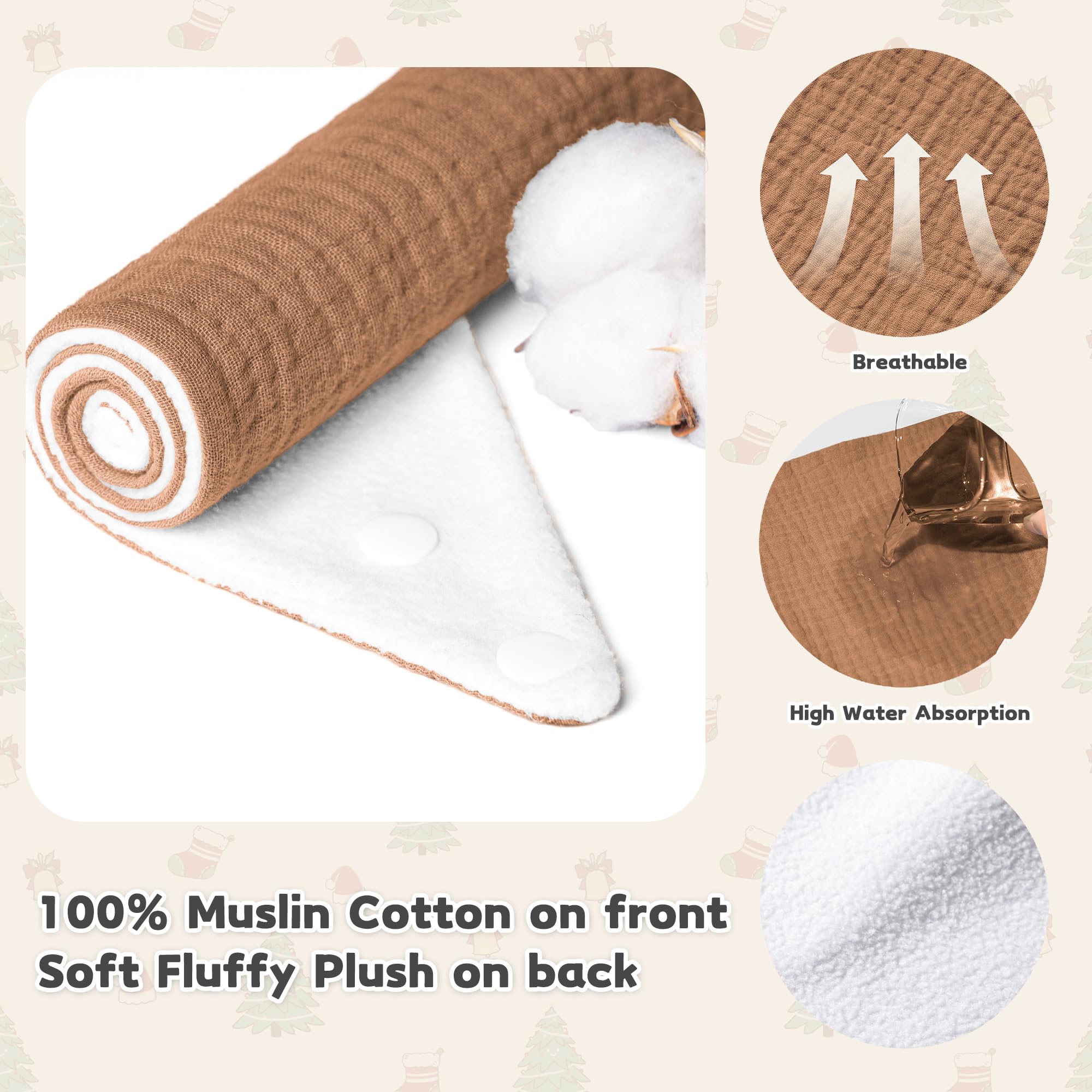 Soft & Superior Absorbency: Our Susurration Muslin Baby Drool Bibs are crafted from 100% cotton muslin on the front, they are backed with water-resistant soft plush to ensure maximum absorption with a skin-friendly, gentle touch for your baby's skin. The dual-layered design ensures both you and your baby remain free from wet clothes all day long.