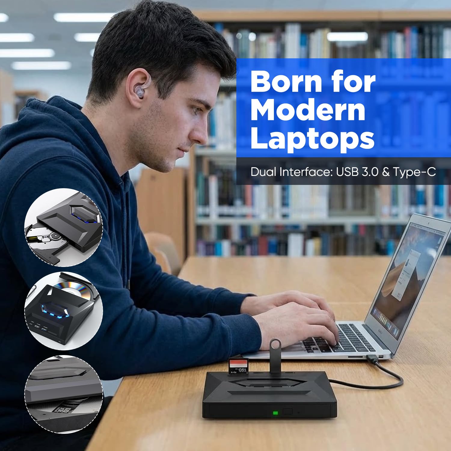 【Portable Design with Anti-Shock Support】Slim, lightweight build with anti-slip base and anti-shock design intended to help reduce vibration during reading/writing—choose a sakerplus portable blu ray drive for steadier use on desks or on the go.