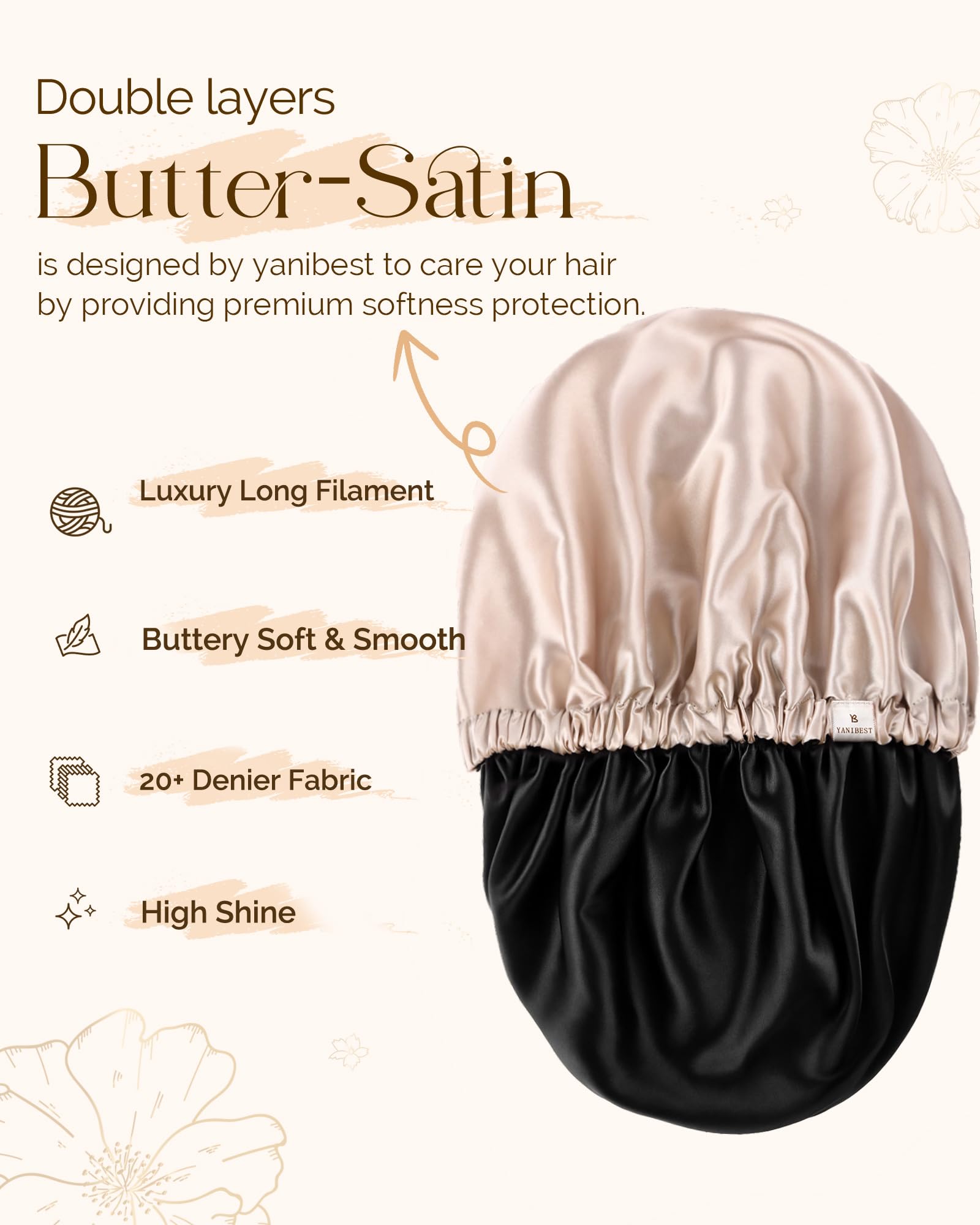 Comfortable Material: This satin bonnet uses high quality satin material that is soft and comfortable, does not irritate the scalp, and allows you to enjoy a more comfortable sleep