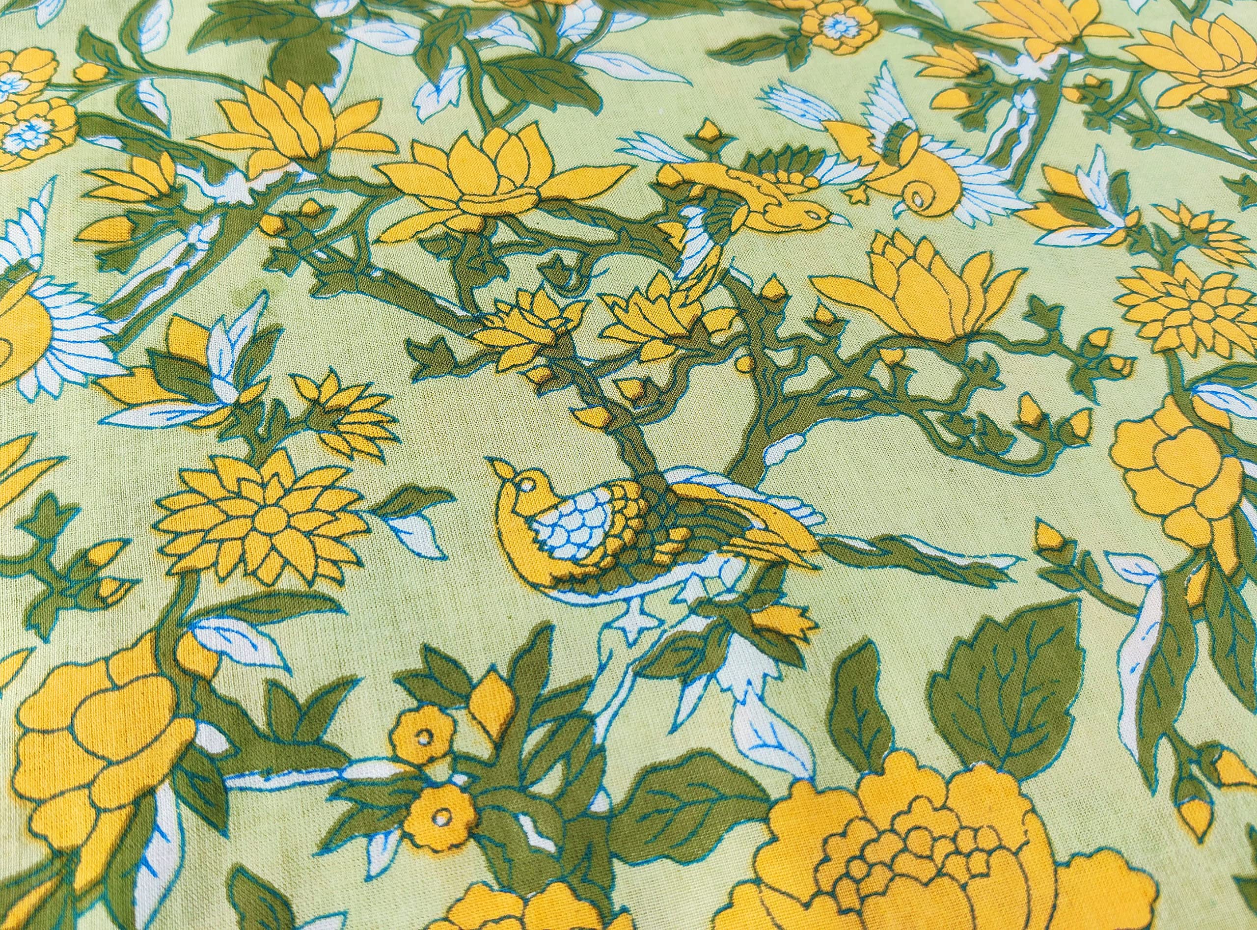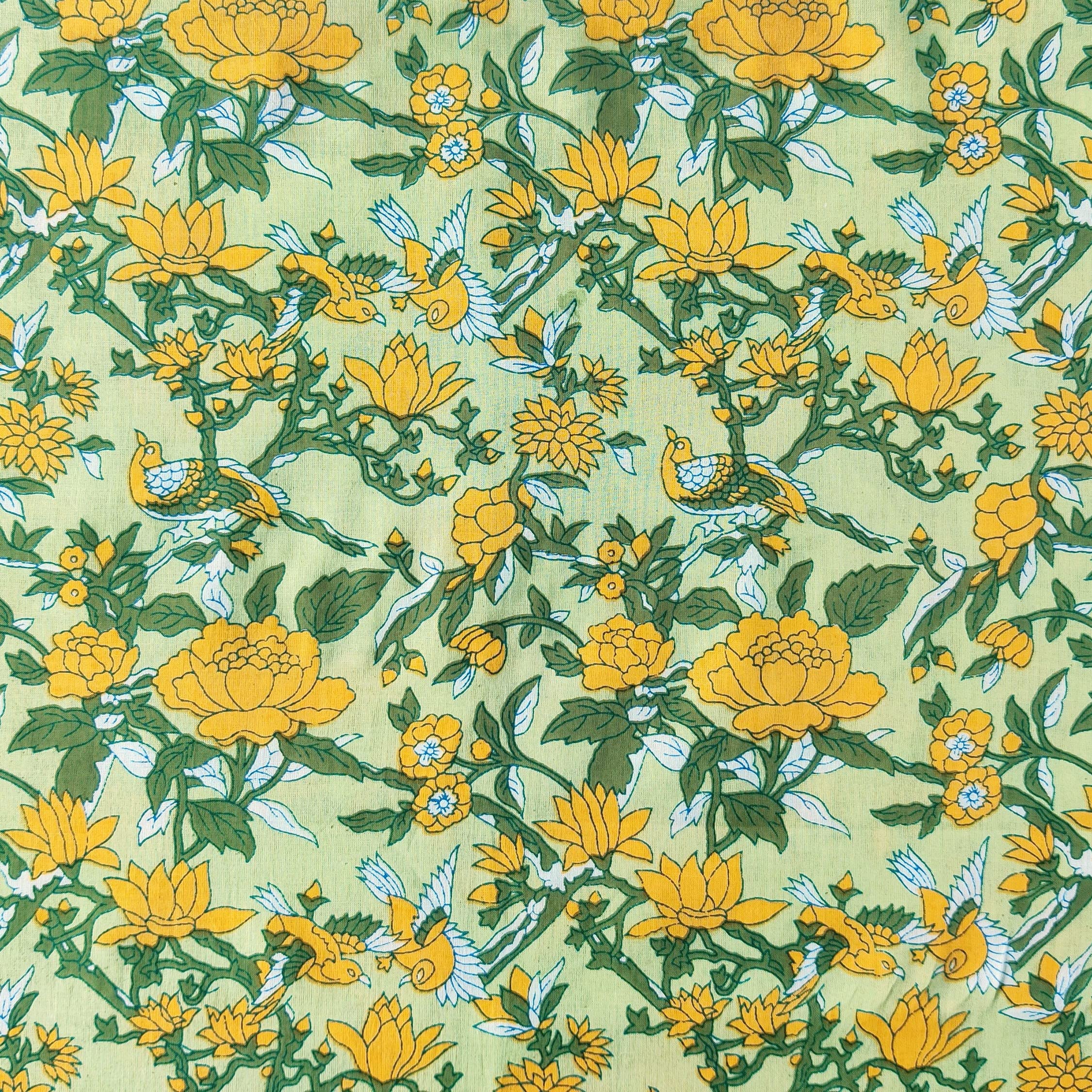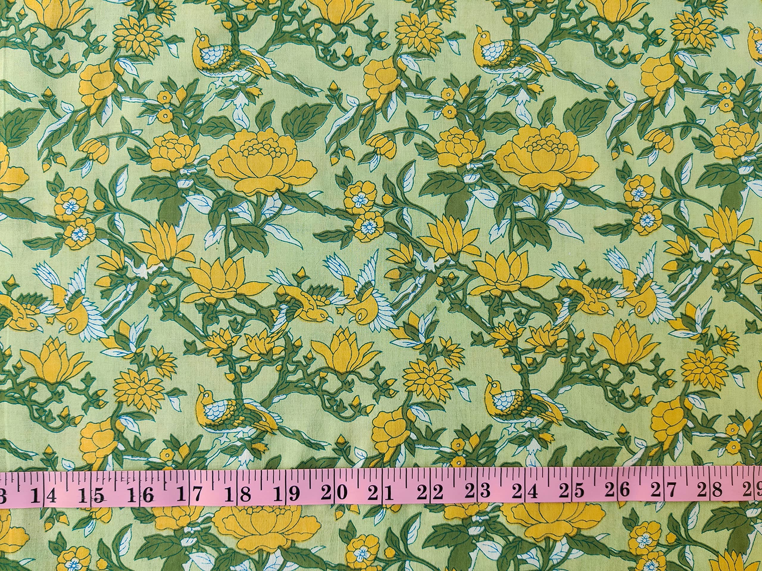 This is a precut piece of 3 yards of an Indian cotton fabric. This is a hand printed fabric using wooden blocks or screens. The width of the fabric is 42 inches. It is a pure cotton yardage and is a thin light weight cotton. Ideal for garments and light home linen. Use this unique and beautiful printed cotton for your next sewing project. If you order 2 quantity, you will receive 2 pieces of cut fabrics of 3 yards each. You will not receive a continuous yardage.