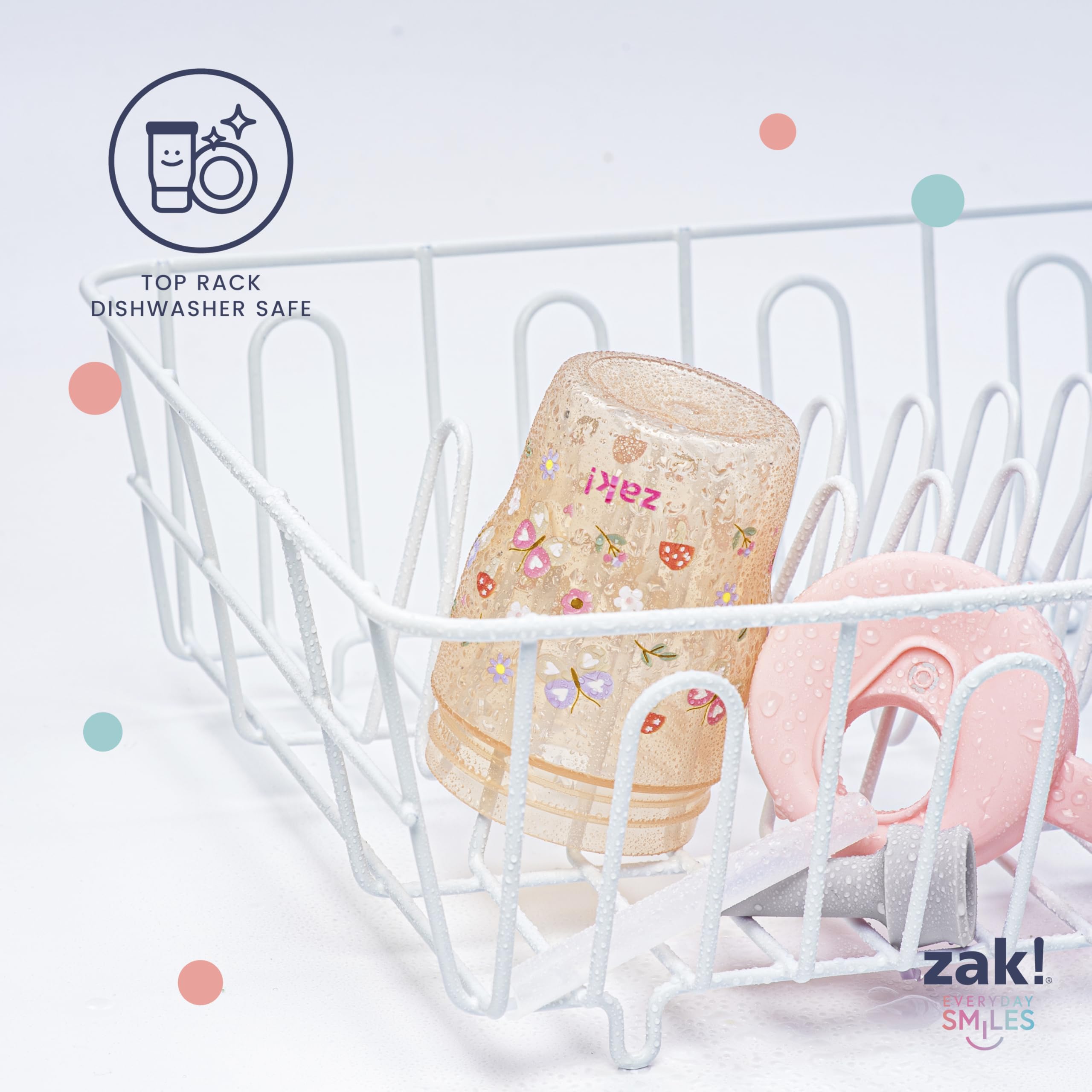 These leak-proof kids' tumblers from Zak Designs make hydration fun! Durable Materials: These tumblers are made from lightweight plastic, and the comfortable straws are made from silicone. Everything is dishwasher safe, and the lid can be disassembled for easy cleaning. Leak-Proof Straw: The straws have built-in valves that allow liquid to flow when drinking and prevent spills when the tumblers are tipped over. You don't have to worry about spills or stains around fabrics or electronics, and drinks stay easily accessible. Hydrate Anywhere: The tumblers won't splash or leak and fit in car cup holders, making them ideal to take on the go. They also have handles that make it easy for small hands to carry around. Specifications: Set of two tumblers with 10 oz capacity. Made of durable plastic and silicone. Dishwasher safe, do not microwave. Length: 2.94-inch, Width: 3.87-inch, Height: 5.72-inch. Design: Springtime, Solid Pink.