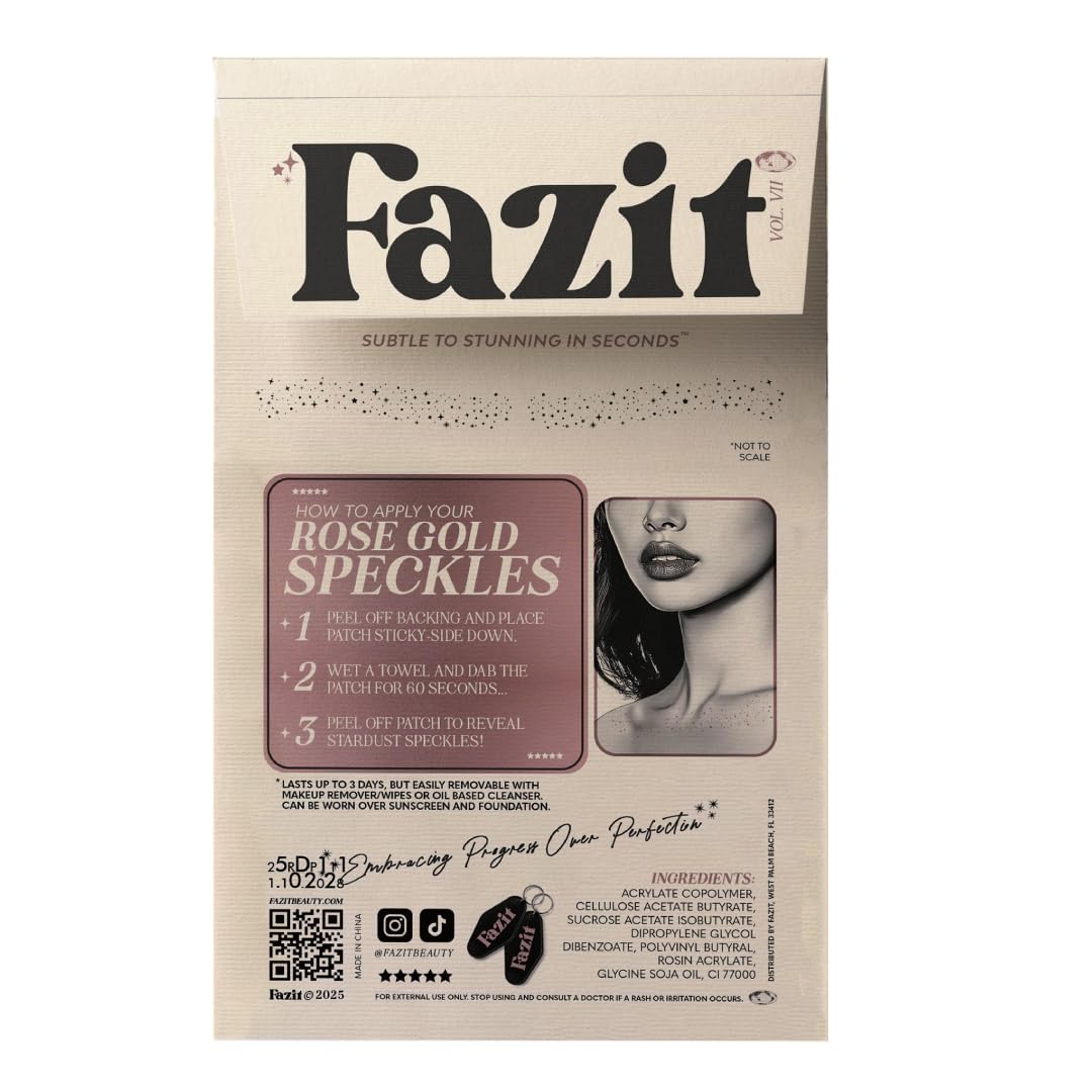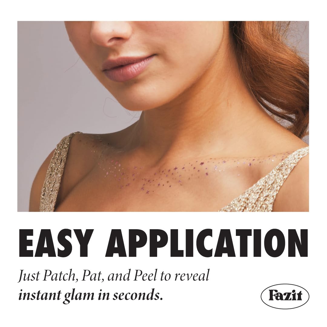EASY TO APPLY - Applying our Fazit facial glitter speckle patches is effortless! Remove the backing by peeling it off, then apply the sticky side to your skin. After that, dampen a towel and apply pressure to the patch for sixty seconds. When the make up patch is finally removed, reveal your gorgeous new glitter speckles. It's easy - no mess, no fuss, just natural-looking glitter cosmetic speckles in minutes. Ideal for those wanting to enhance their look with a touch of glitter sparkle!