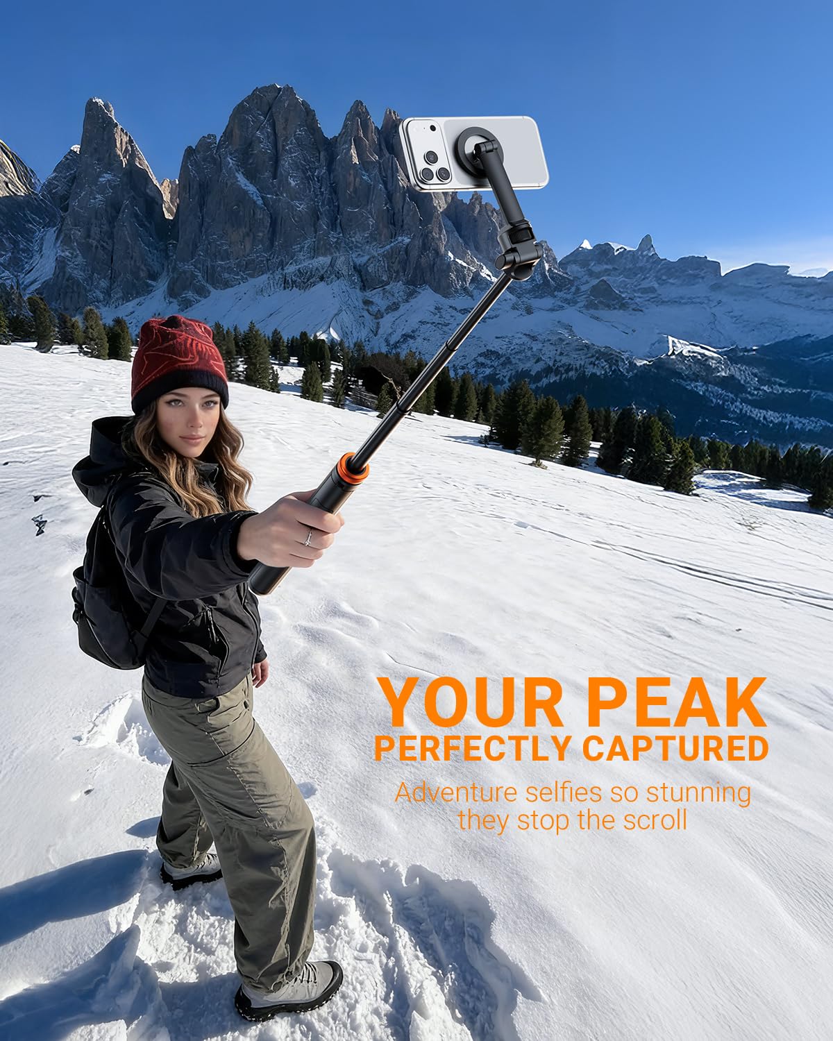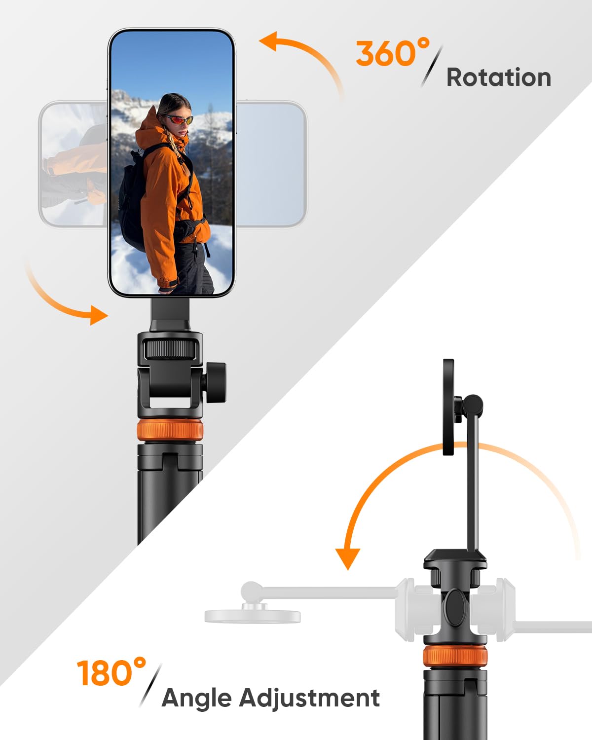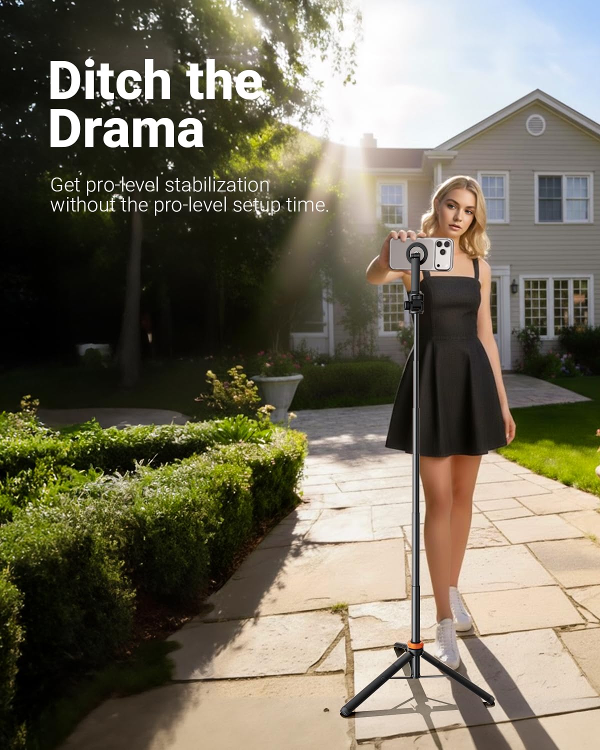 Rapid Extension Tripod for Phone: Glide the rod in a single, fluid motion to convert it from a compact tripod into a full 63" selfie stick. Achieve instant elevation for dynamic filming.