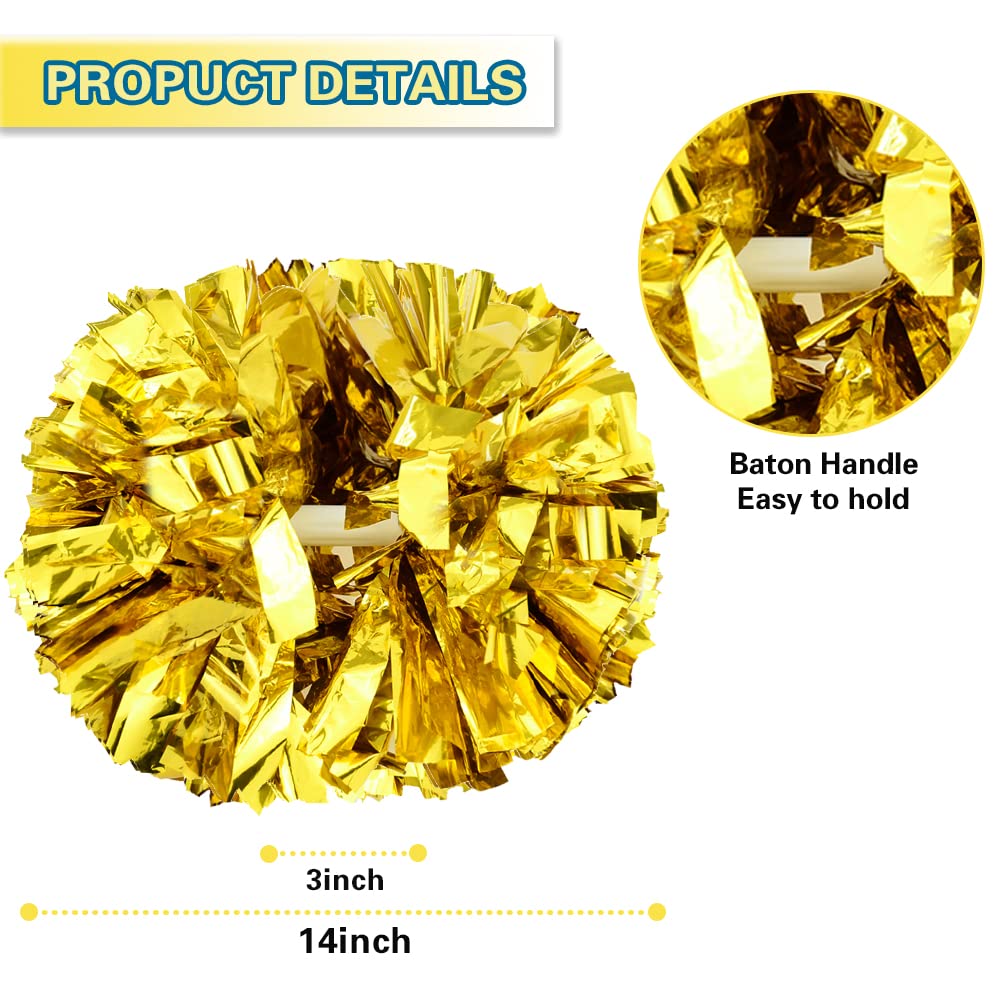 Package Included - You will receive 6 pieces (3 pairs) 14 inch metallic gold cheer pom poms in box. A great gift choice for your daughter who love cheer. And there are many colors available to match your uniform or your team supplies