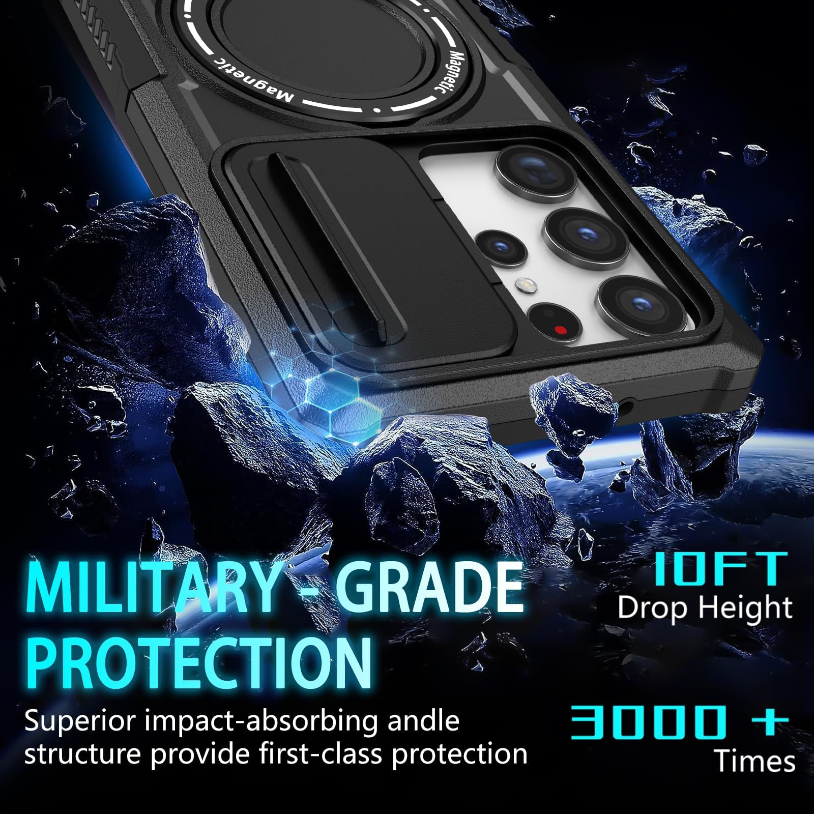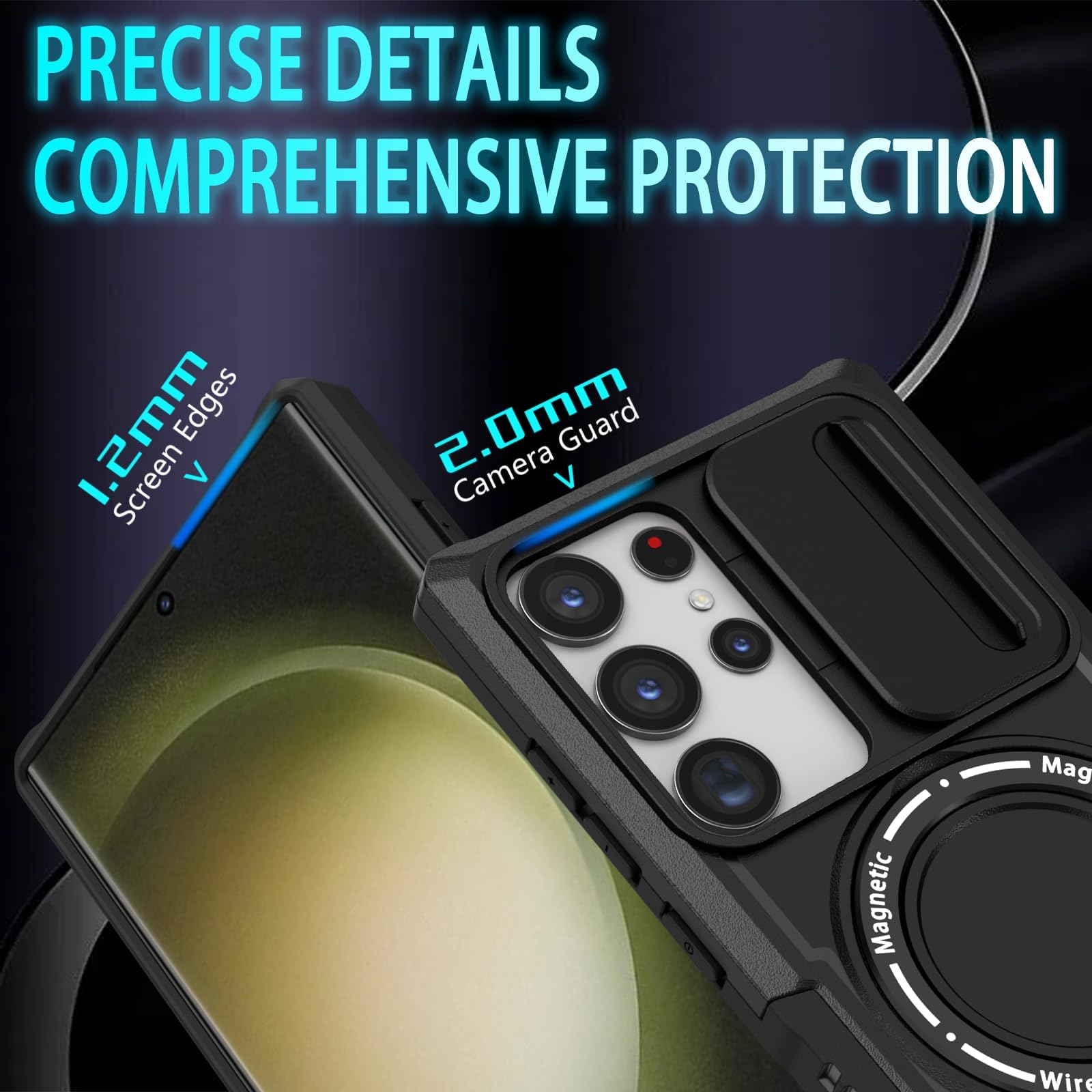 【Military Grade Protective】This Samsung Galaxy S23 Ultra 6.8 inch cover certified by the Military Standard, survived over 3,000+ drop tests from up to 10 FT. Provides excellent shock and drop protection, protecting your phone from accidental drops, shock, bumps, impacts, and scratches. A 2.0 mm offset border over the camera opening prevents the lens from being scratched; a 1.2 mm bezel over the screen keeps your iPhone screen from damage.