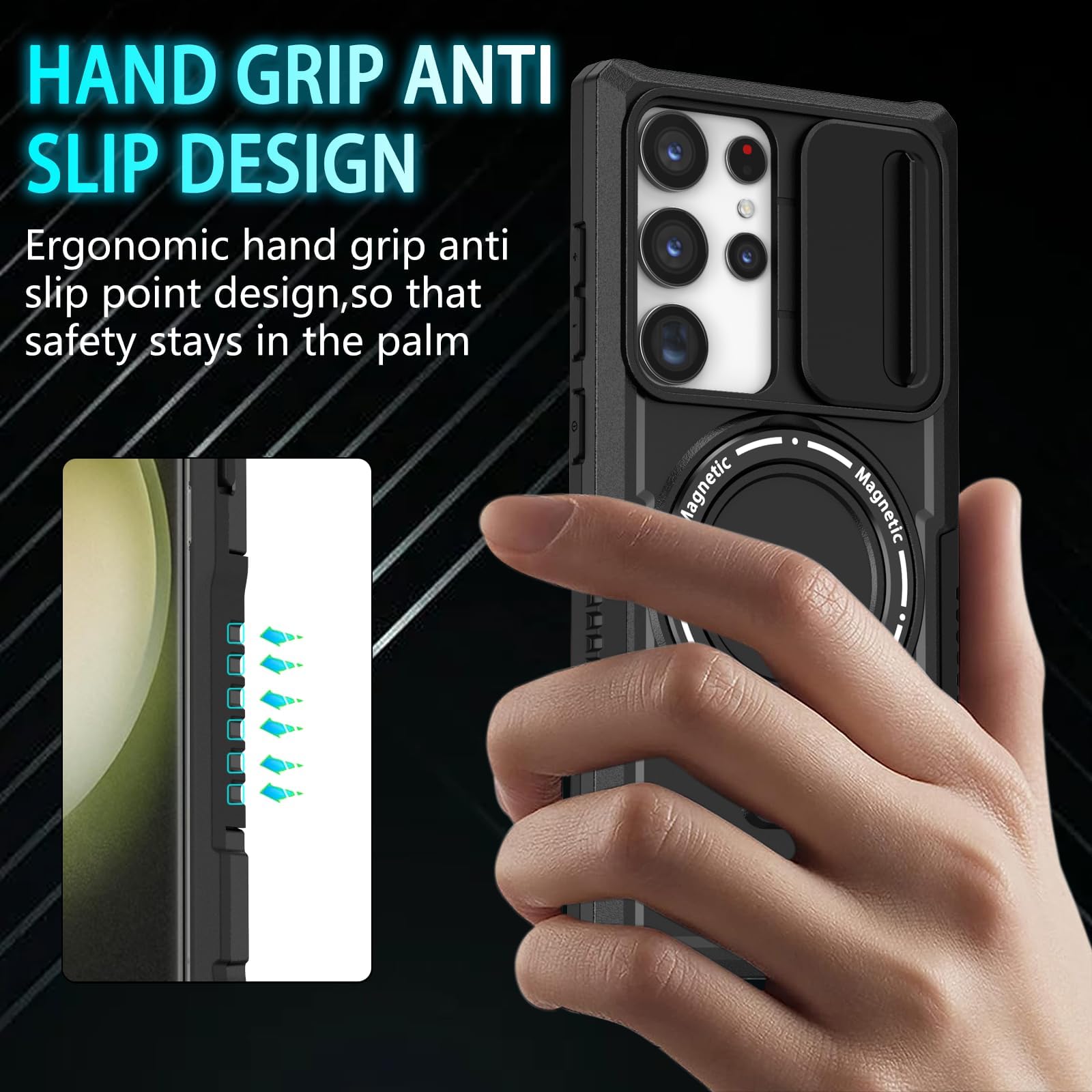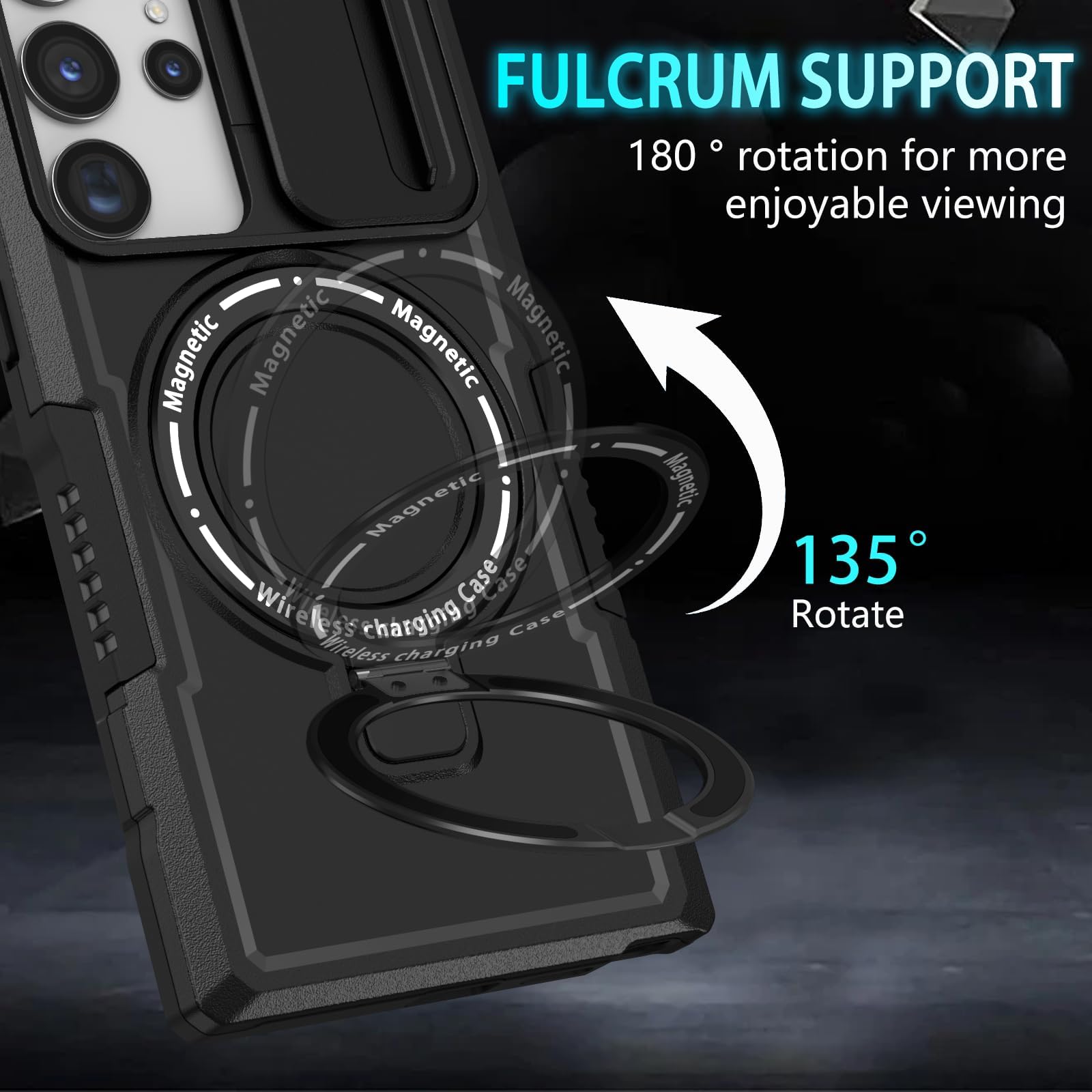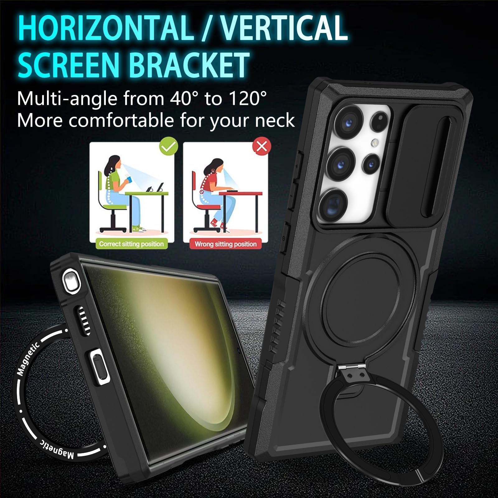 【Magnetic Ring Stand】This Samsung S23 Ultra phone case with magnetic ring kickstand provide two stand modes for vertical and horizontal viewing, can help you keep your hands free when watching web pages and videos. It can also be attached to a magnetic car mount (Not includes the magnetic car mount holder).