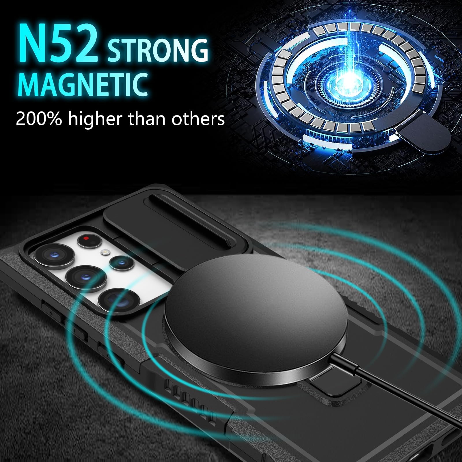 【Compatible with MagSafe】The Samsung Galaxy S23 Ultra case built-in MagSafe function and automatically adsorbs into place with magnetic charging, making charging your phone more convenient and faster. It is compatible with all MagSafe accessories like leather wallets, wireless chargers, battery packs, and car mounts.