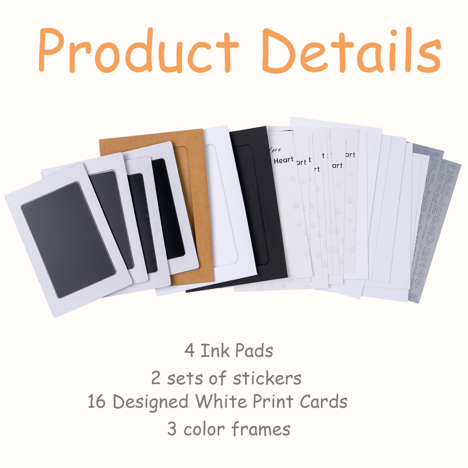 Easy to Use: Place the clean touch ink pads sover the provided cards stock, gently press your pet's paw onto the "inkless" ink pad , after a few seconds, the print will be done, quick to dry and no additional stains included.Create a beautiful pet memento for your dogs or cats.