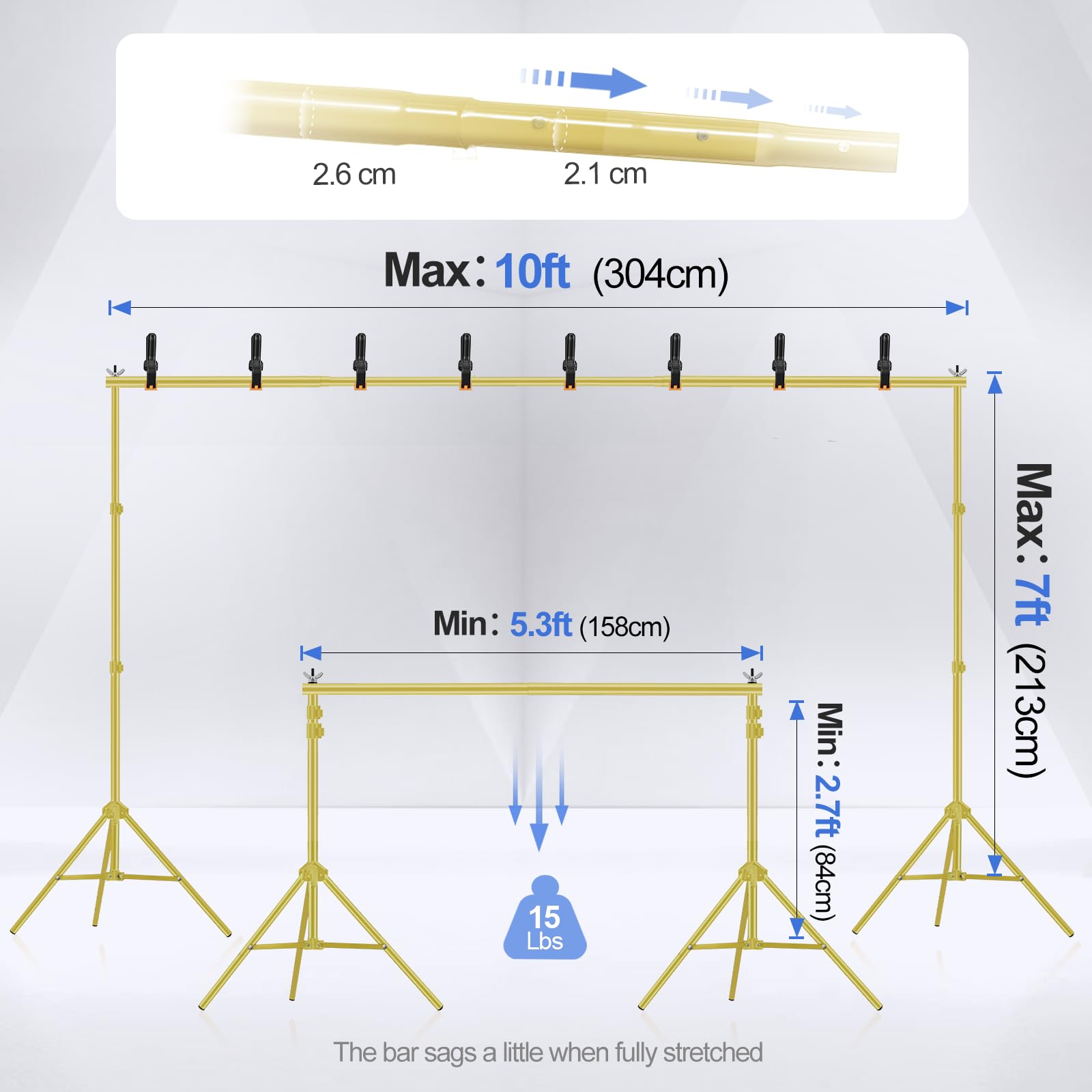 【Multifunctional Application】This backdrop stand kit is suitable for newborn photography, baby photo shoot, professional photo studio shooting, product display background, DIY photo booth, pet pictures, shooting video or home/wedding/parties decoration. Note: Due to gravity, the crossbar will bend slightly, It is not suggest to hang anything too heavy and kindly please use sandbags to add weight for keeping stable in windy conditions.