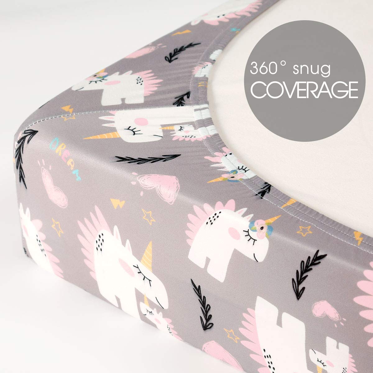 Apple It Within Seconds: Thanks to the elastic bottom, our pack n play sheets come in a classic, pink simple triangle/dream unicorn print that will put the finishing touches to any bedding. Make sure to give your darling a serene and calm bed to rest in.