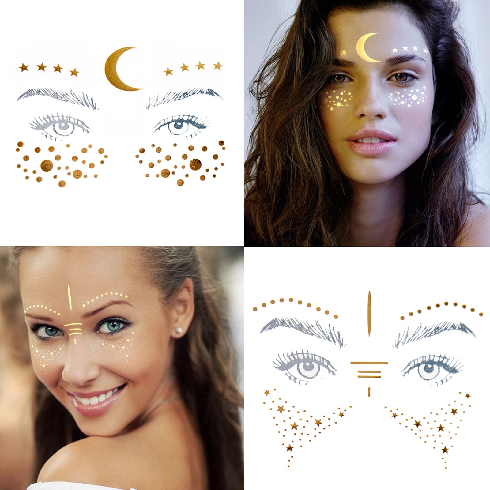 FACE TATTOOS: Personalized glamorous face metallic temporary tattoo with gold temporary tattoos for you to change it at any time, used for any part you want.