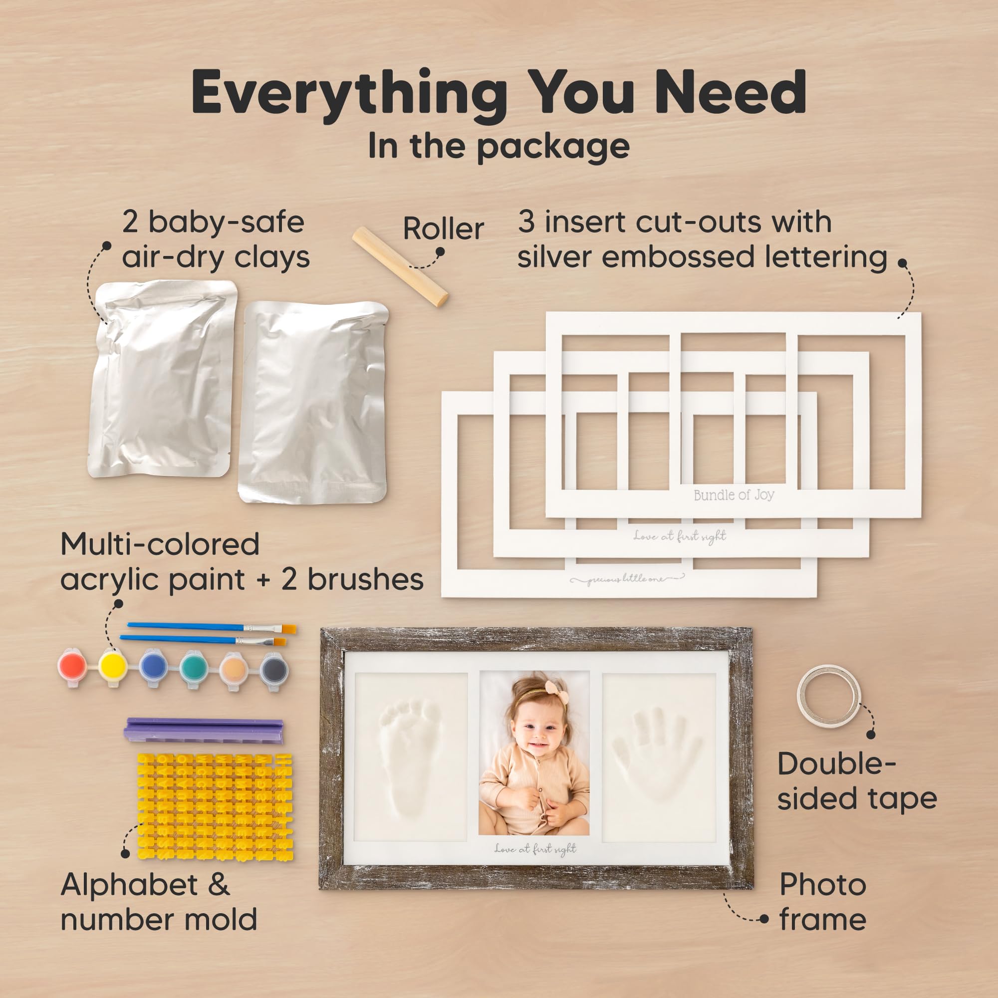 100% Safe Food-Grade Clay - Our baby picture frame features 100% baby-safe air-dry clay, perfect for preserving your baby prints. Our premium material ensures durability, the baby hand and footprint maker will look flawless for years to come.