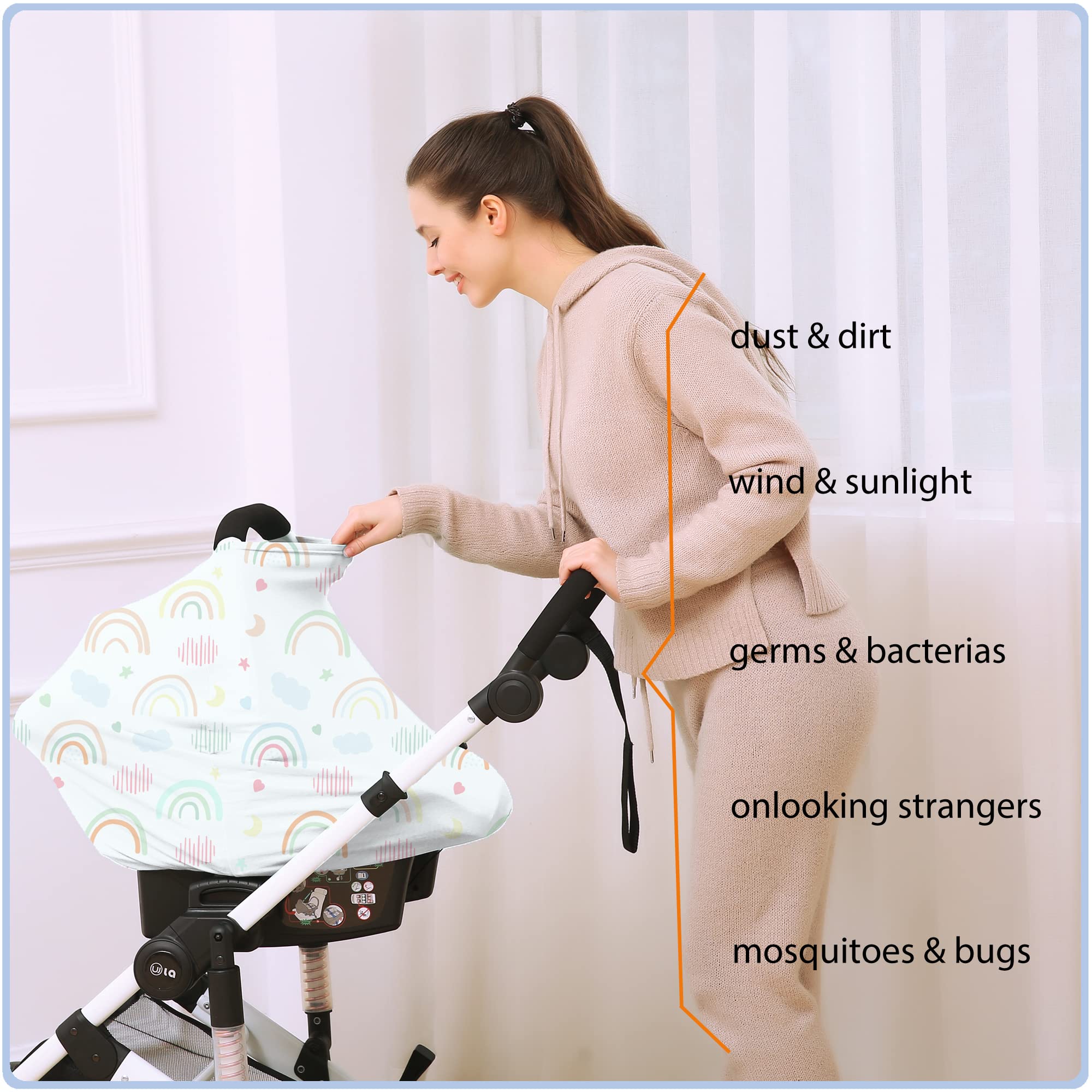 MULTIPURPOSE USE: Enjoy a multitude of purposes for this car seat covers for babies such as practical breastfeeding cover and also be used as a nursing carseat cover, carseat canopy, stroller cover, baby feeding high chair cover and more!