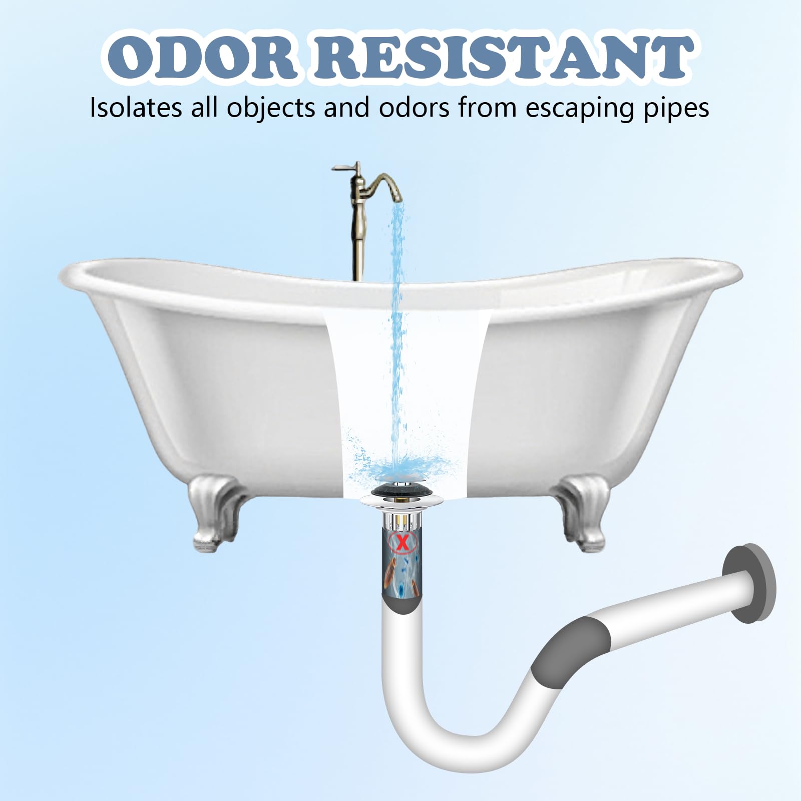 【Universal 3 in 1 Tub Stopper & Drain Hair Catcher】 One unit, triple function. The bathtub stopper combines the functions of water storage, hair strainer and odor isolation. Simply push down the button to store the water, push again to drain the water and catch hair. With the dual sealing gaskets, the bathtub stopper can isolate the odors and pests from the drain effectively. It’s more convenient and effective than other bath tub stoppers with a single function.