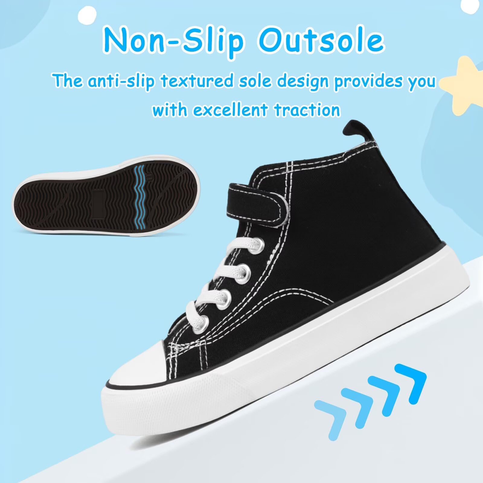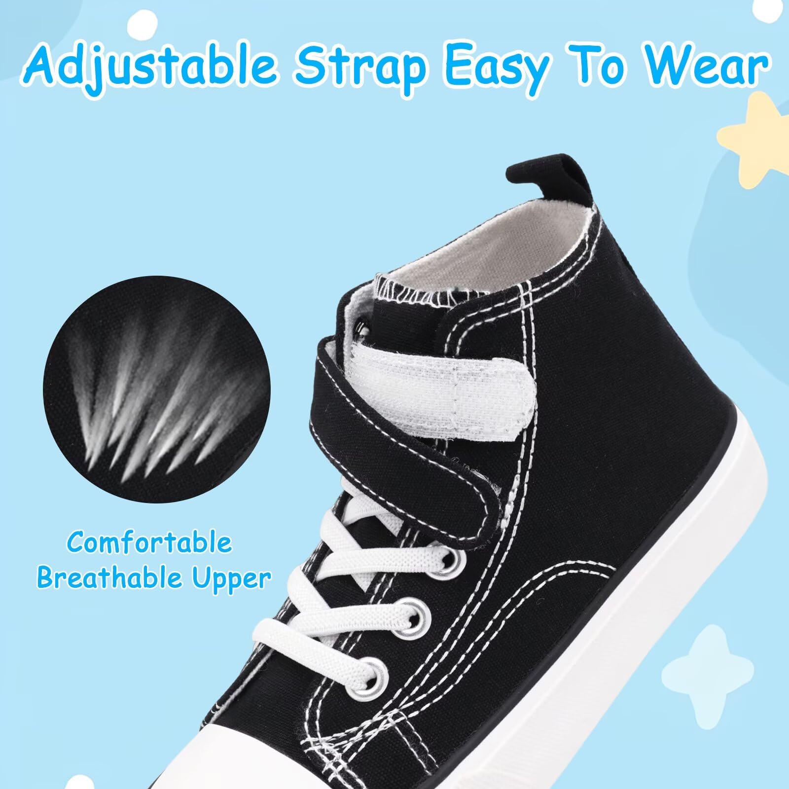 Description Our focus on quality and comfort ensures that every step your child takes is a happy one. Don't miss out on this opportunity to make a statement with our stylish and practical toddler girl boy shoes. Why are we trusted and chosen by most customers? 1.Cotton Fabric & Canvas Upper Our kids shoes boys girls feature a cozy cotton fabric upper, blending the best of both worlds. The canvas construction ensures durability while maintaining a classic, stylish look. The natural breathability of cotton ensures feet stay comfortable and dry throughout the day. 2.Breathability & Skin-Friendliness Designed with breathability as a key consideration, our toddler girl boy sneakers allow air to circulate freely, preventing overheating and discomfort. The soft, skin-friendly material ensures a comfortable wearing experience, gentle on delicate skin. 3.Lightweight & Moisture-wicking Lining Ultra-lightweight, our toddler slip on shoes are perfect for active kids. The inclusion of a moisture-wicking lining absorbs sweat and disperses it quickly, keeping feet dry and comfortable even during the most intense play sessions. 4.Non-slip & Safe Rubber Outsole With a focus on safety, our little kid tennis shoes girls feature a non-slip rubber outsole that provides excellent traction on various surfaces. The flexible material allows for natural foot movement, encouraging healthy development. 5.Cushioned Insole, Anti-Trip Design & Durable Construction Inside, a cushioned insole offers added comfort and shock absorption, protecting feet from the impact of jumps and landings. The hook-and-loop fastener ensures easy adjustment and a secure fit, preventing trips and falls. The reinforced toe and heel provide extra protection, while the overall durable construction ensures long-lasting wear.