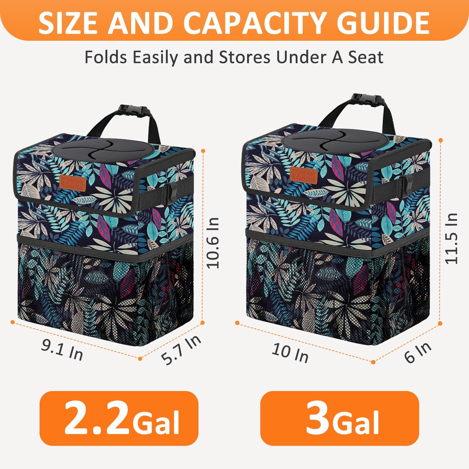 Intimate Design& Capacity: There are 2 side clasps for fixing disposable bags, effectively preventing falling out; Vankor car trash bags have about 2.2 and 3.0 Gallons for storage of car garbage or other stuff; Car trash bin has 100% leak-proof PEVA thick lining, no spillages will happen and is easy to be cleaned; The extra-large opening is made of elastic soft rubber, very roomy and easier to put litter into the bag, and helps to keep trash from spilling
