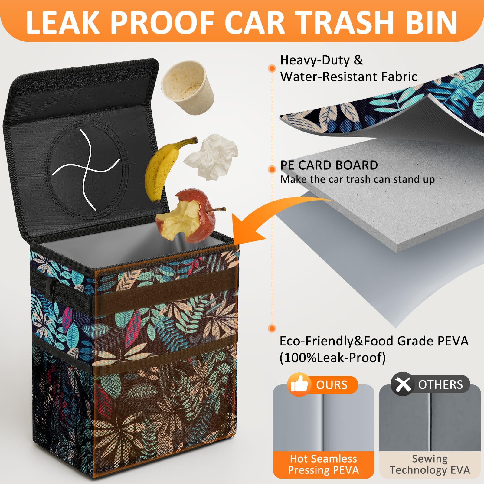 Wide Compatibility: An thoughtful solution for people who have the need for car neat and car interior storage; Perfectly fits varieties of types of vehicles including sedans, SUVs, RVs, trucks, vans, minivans, boats, campers, taxis, buses, etc; Auto trash can for car is very sturdy , has a long service life, and is very convenient to carry; The car trash can for the back seat is foldable, when you don't need it, just fold it up without taking up any space