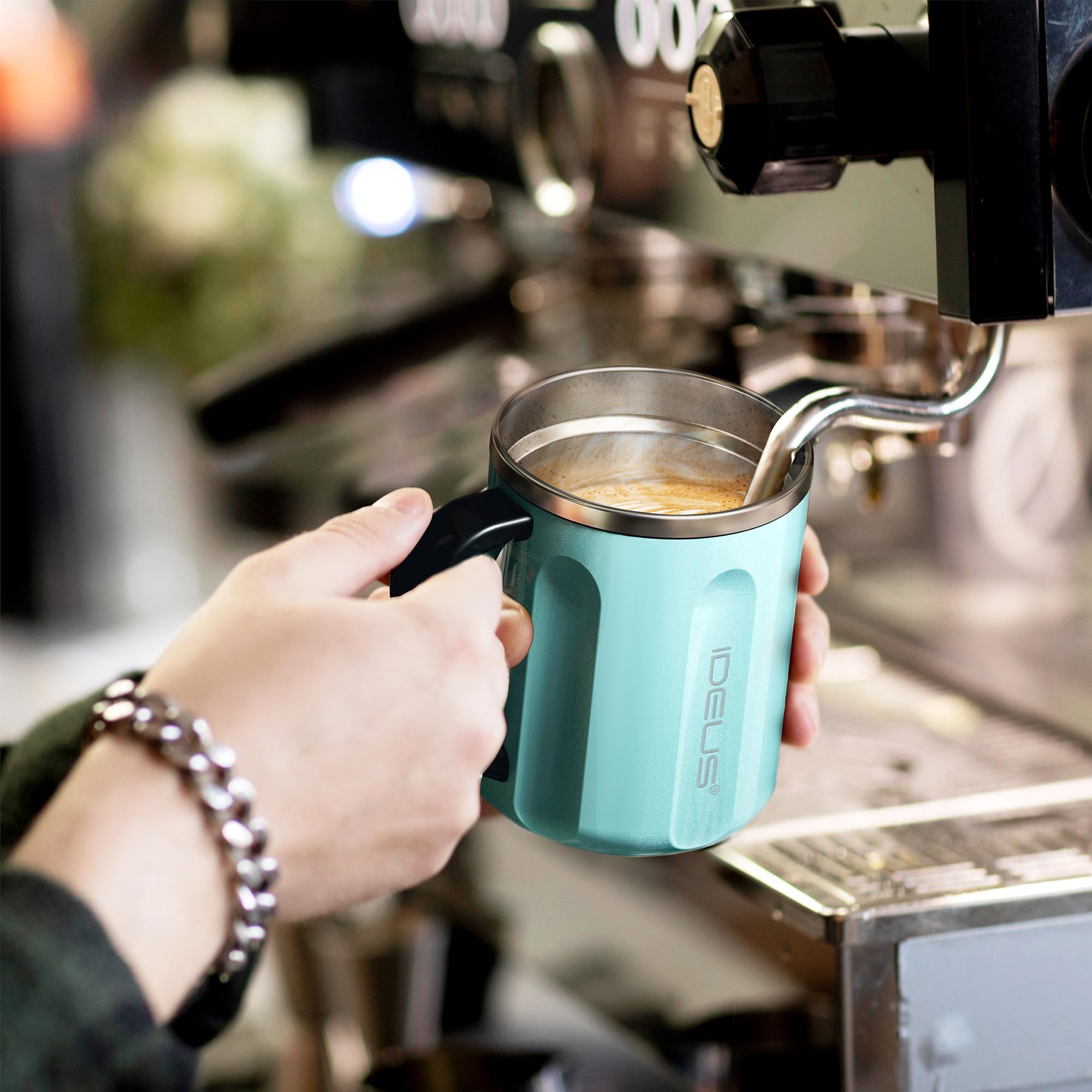 SAFE AND DURABLE - The IDEUS coffee mug with lid is constructed from SUS 304 18/8 stainless steel, premium silicone, and Tritan-copolyester. We really believe that using top-notch materials is the key to giving you an awesome drinking experience.