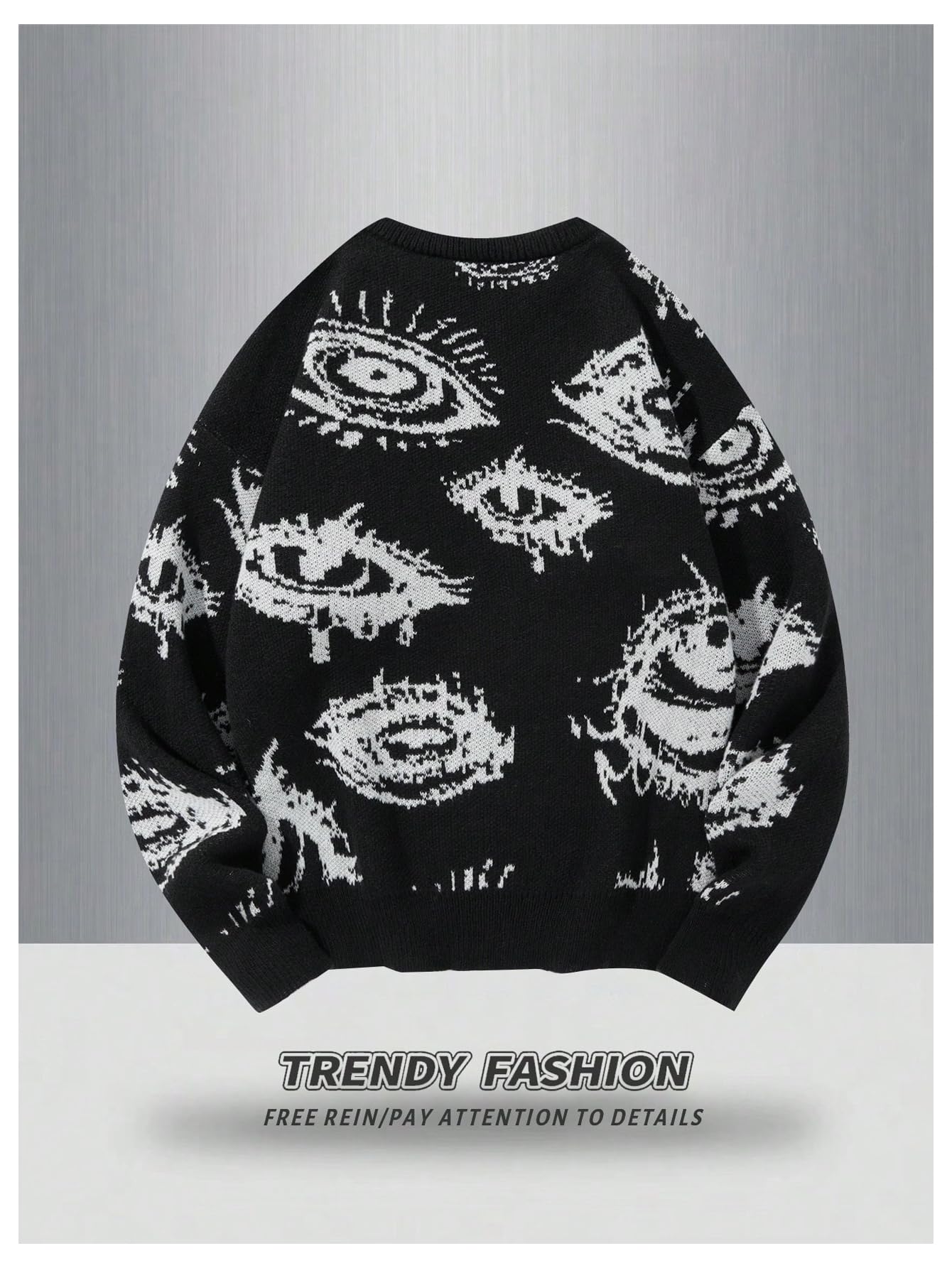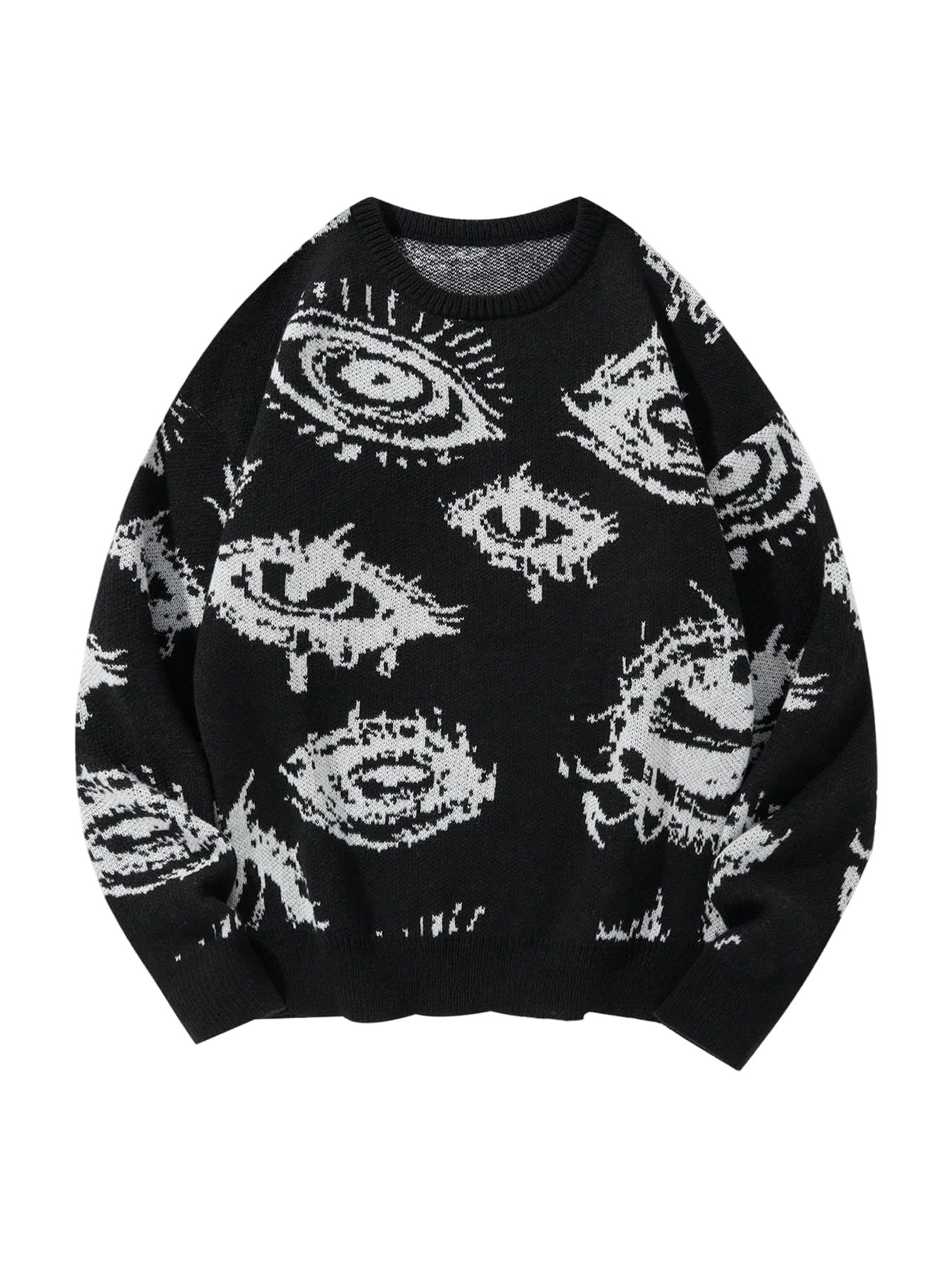 Features: Graphic, round neck, long sleeve, oversized, halloween sweater, loose fit pullover sweaters for men