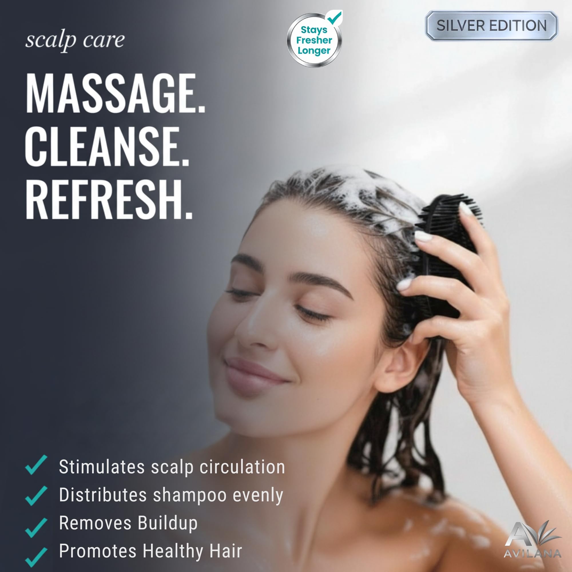 ★ PERFECT FOR ALL HAIR TYPES — Works beautifully with thick, curly, textured, straight, or fine hair. Helps shampoo reach scalp through dense hair. Safe for color-treated hair — smooth silicone bristles won't cause fading or damage. Silver Edition ensures freshness between washes.
