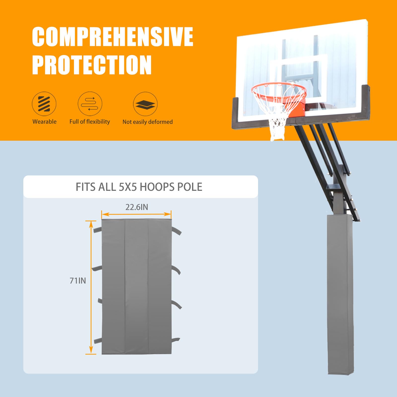 【Easy to Install】Using tailored tight-fastening velcro straps.Easily install on basketball hoops with 5x5 Inch square poles.