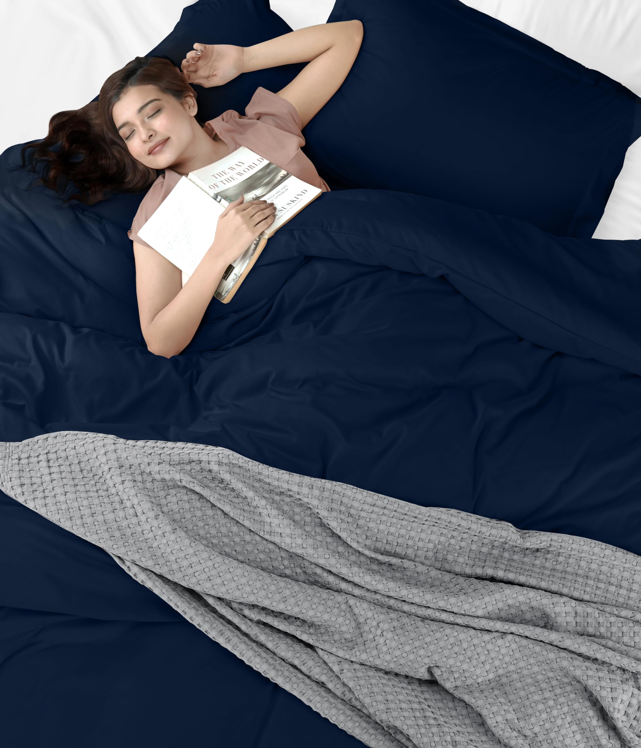 Perfectly sewn closure - The hidden zipper closure of the duvet cover set facilitates inserting your duvet into the cover and keeps it secure without shifting or bunching up. Additionally, the duvet cover features seven tie knots that keeps the comforter in place.