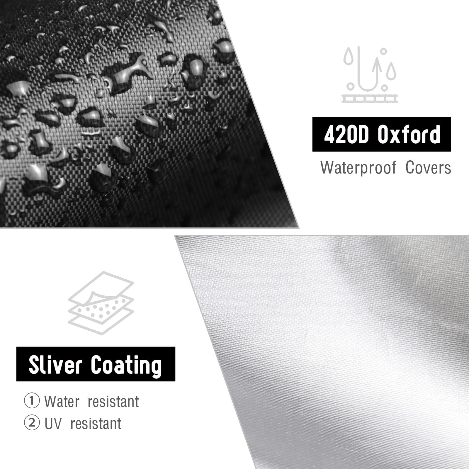 WATERPROOF & ALL-SEASON - OEKO-TEX STANDARD 100 certified Heavy Duty Oxford fabric with silver-plated waterproof coating + sealed seams. Defends against rain, UV rays, dust, and snow.