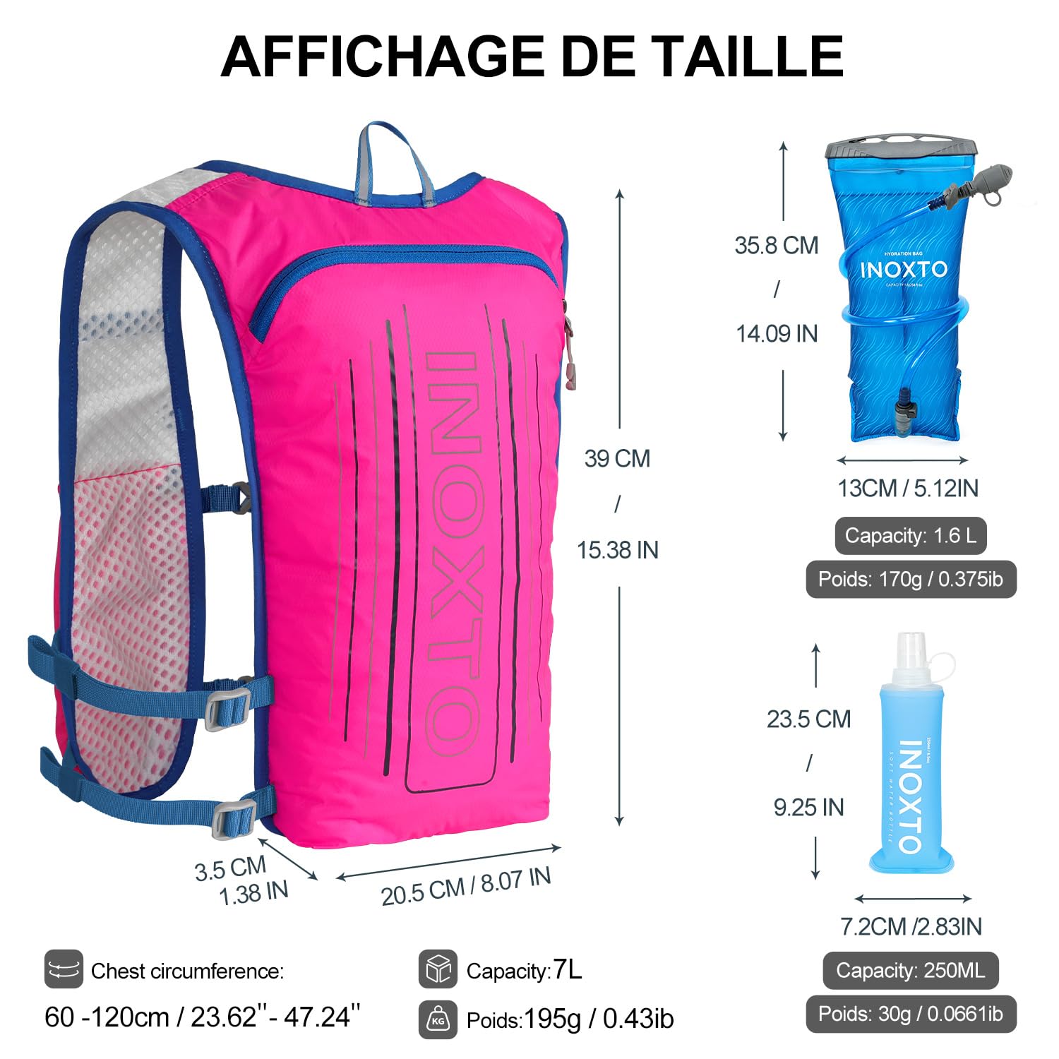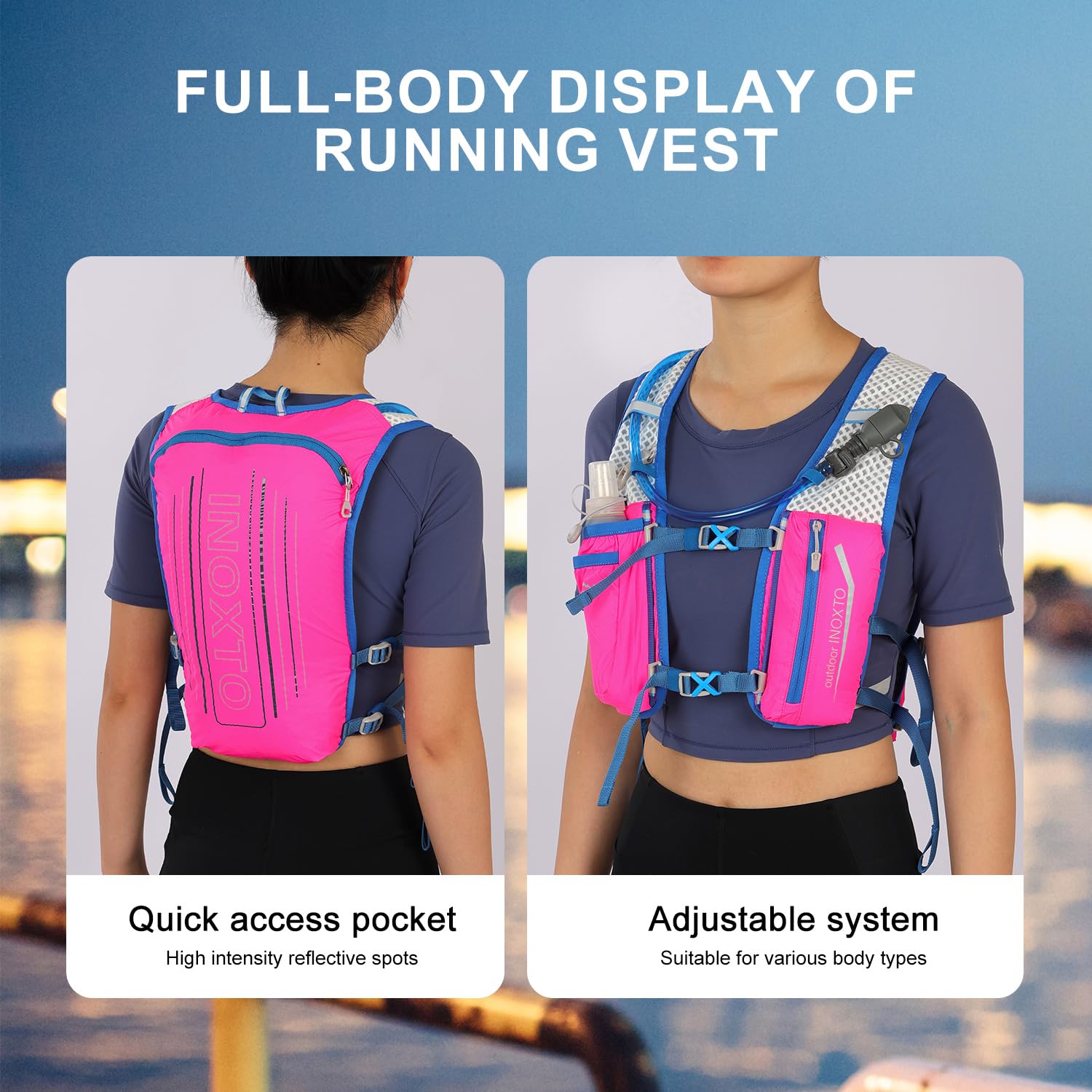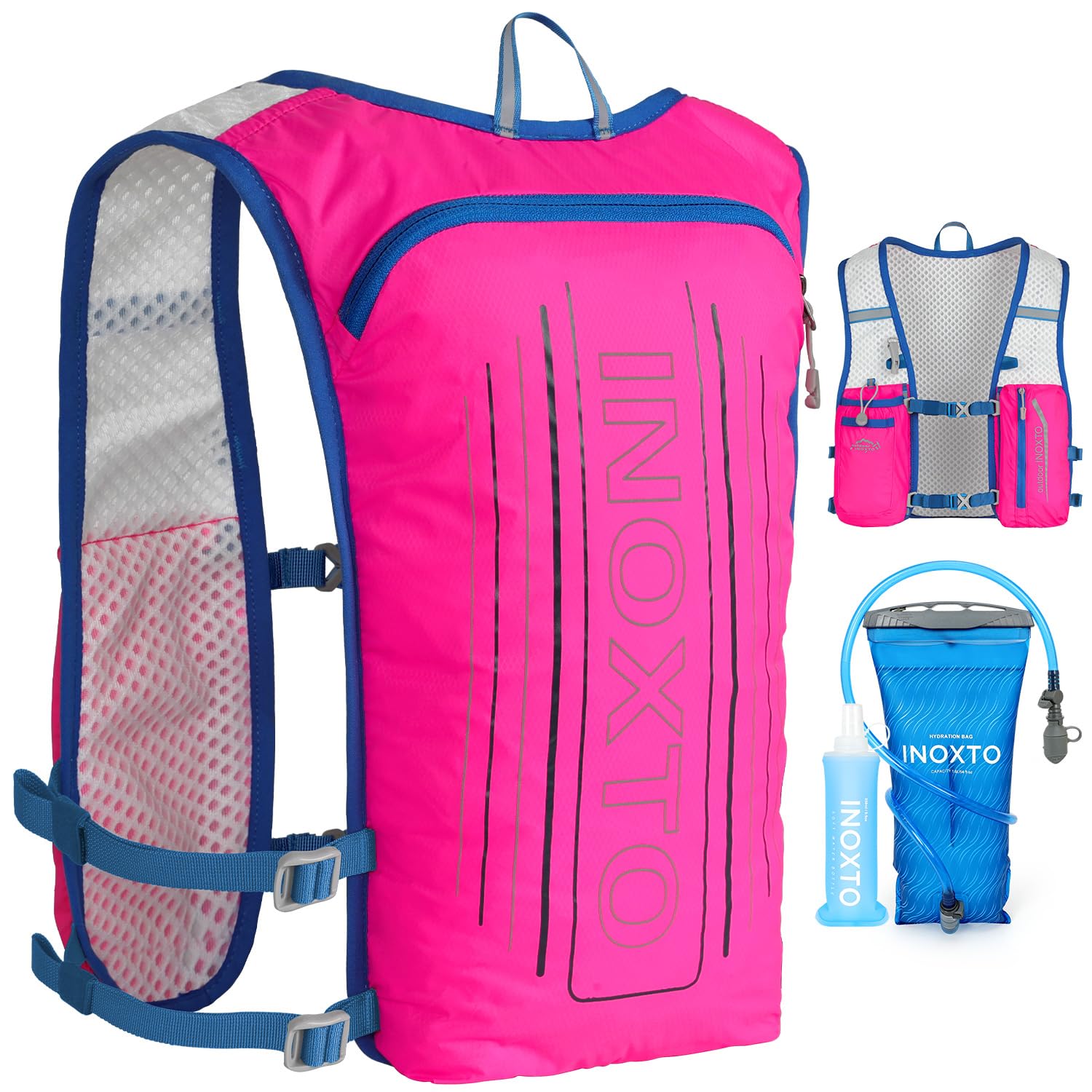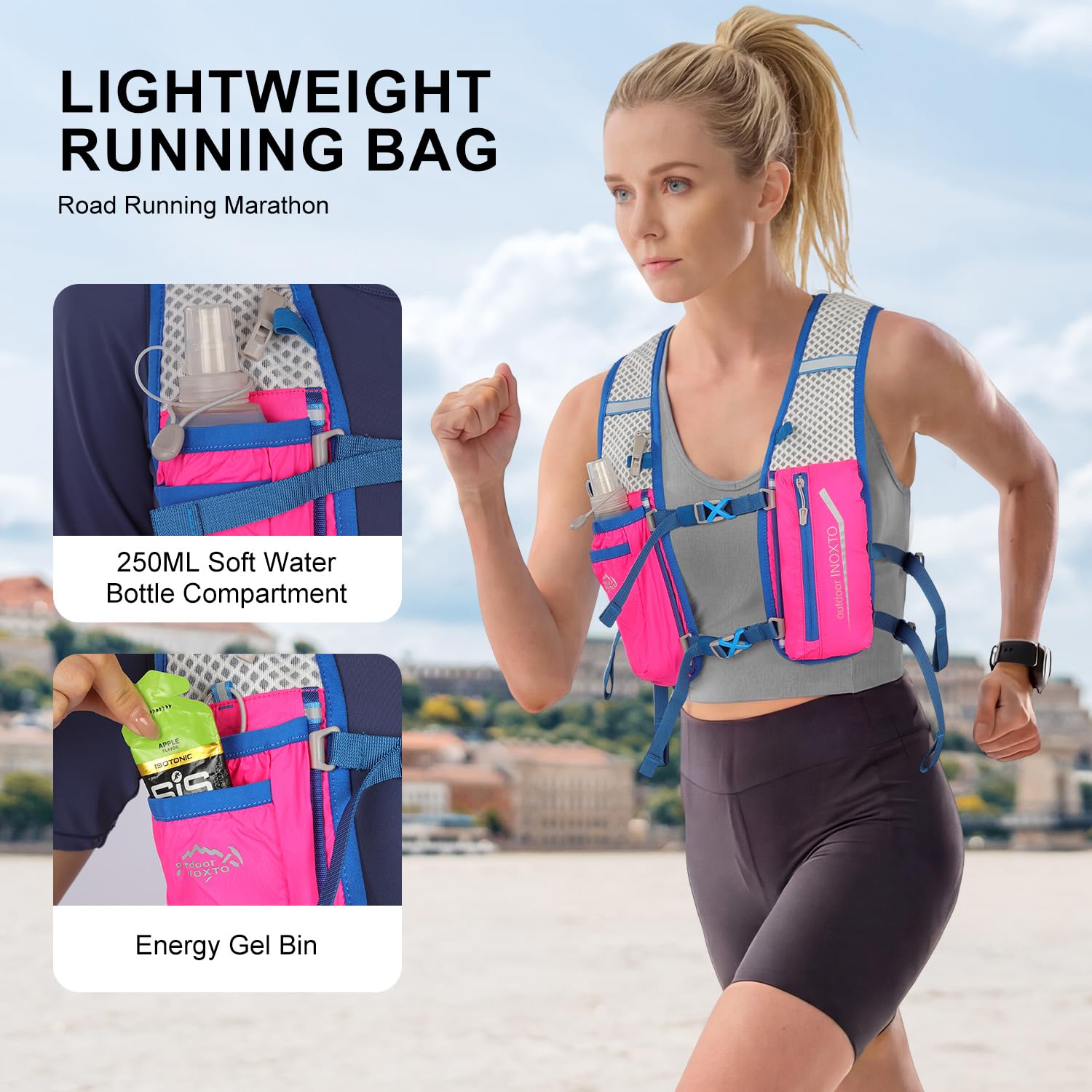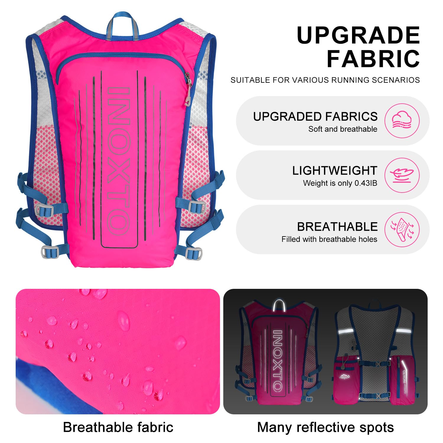 ❤ 【Ultra-lightweight design】 High-quality nylon material and ultra-lightweight design make it more comfortable to drive. The INOXTO Sport Backpack weighs only 140 grams and can hold 1.5 liters in the main compartment. In addition, the left and right belts have pockets for storing 250 ml PET bottles. Next to the main pocket, there is a pocket for storing mobile phones and items, so you can jog while listening to music!