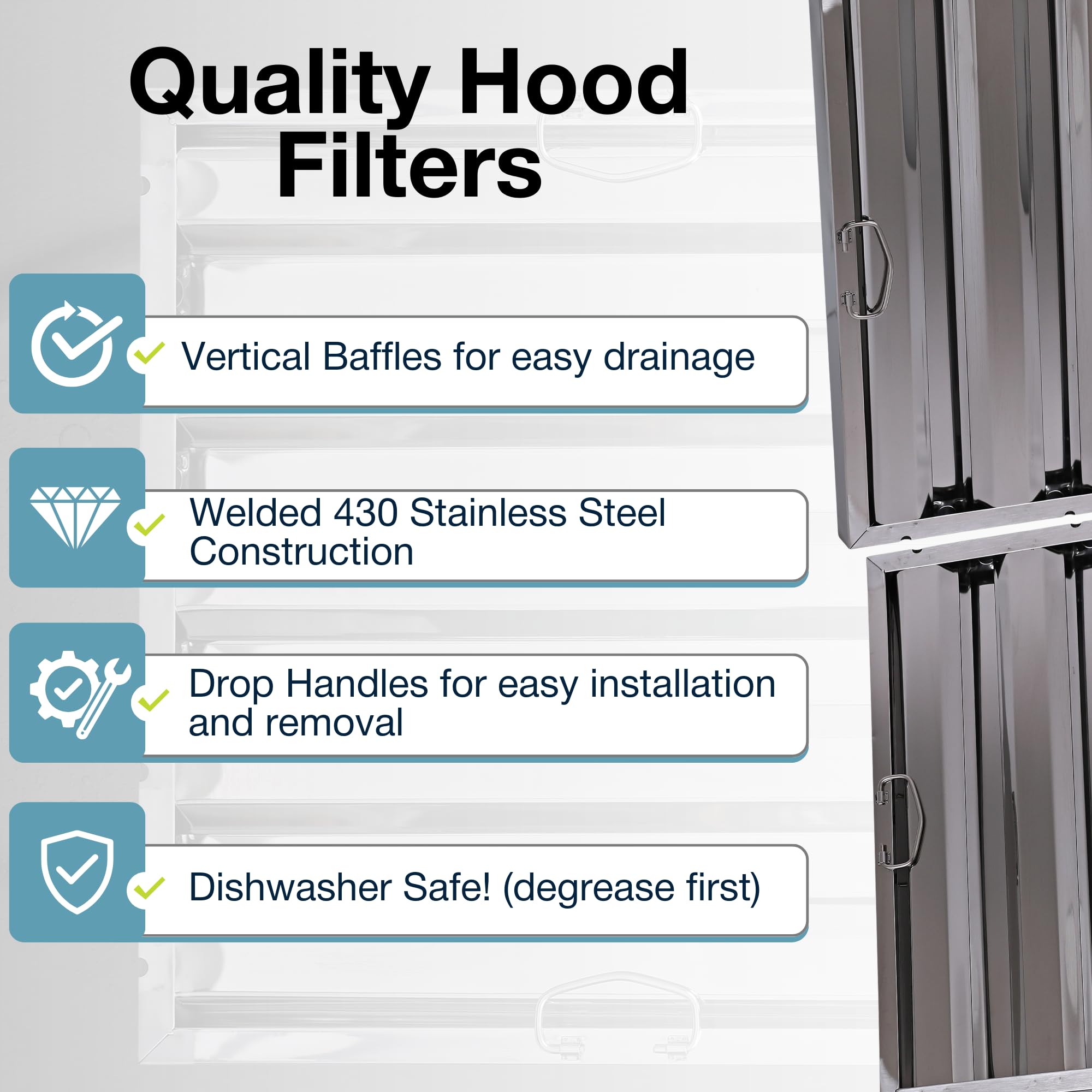 The smooth baffle design captures and channels grease into a drainage system, reducing the risk of buildup and grease fires, while maintaining proper ventilation in your kitchen.