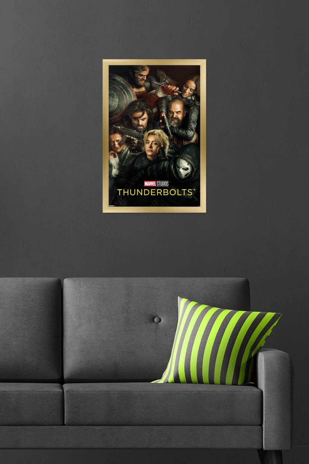 Allposters framed posters are everyone's favorite room decor! The clean, modern design and premium satin finish of this Marvel Thunderbolts - Teaser One Sheet Wall Poster will make a bold wall decor statement in any room. Decorate the bedroom, bathroom, kid's room, living room, office, dorm, and more! Our framed posters are lightweight and easy to hang using the sawtooth hanger so you'll be able to enjoy it in no time. Every one of our framed posters are proudly Made in the USA. Add these decorations alongside the other accessories on your party supplies list too! Allposters's wall posters are the perfect way to dress up your parties. A framed poster makes a great gift as well! Whether it's for a birthday, Christmas, house warming or for your best friend, they'll love receiving a framed poster to show off their style.