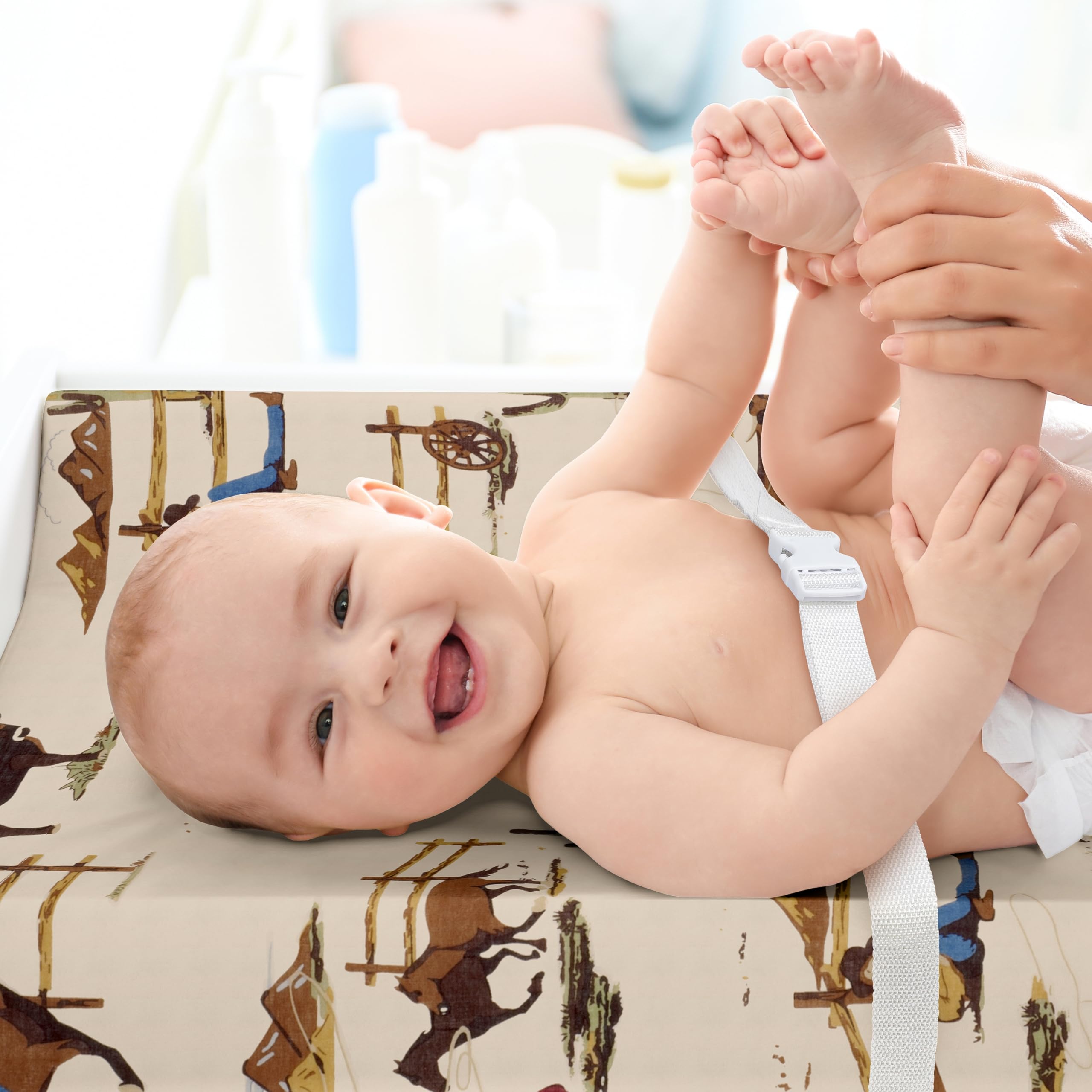 Add a baby change mat cover sheet to your list of must haves for your new little one! This soft pad cover is stretchy and comfortable to fit most changing table pads perfectly while also providing a stand out nursery decor accessory to complete the look of your baby room. Add flare to baby outfit changes and diaper changing time with a baby changing pad cover that fits most standard and contoured changing pads with a fully elastic band all the way around the edges for a secure fit.