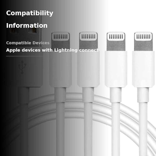 MAILESI lightning cable set is designed to improve the charging speed for your devices, an ideal buddy for office, game, daily life, outdoor, long distance journey & business trip. iPhone Charger Cable: ✔ Full Support with iOS versions and all future updates ✔ Strong and durable premium material support upto 5500 times bending ✔ High coverage aluminum foil makes data transmission is not disturbed by external signals ✔Gold-plated C48 terminal and tinned copper material ensures charging performance increased by 30% ✔ Fast Charging speed and High Speed transmission ✔ Compatible with Devices: -iPhone 14/13/12/11 Pro/ Max/ mini/ XS MAX -iPhone XS/ X/ XR/ 8 Plus/ 8/ 7 Plus/ 7/ 6S Plus/ 6S/ 6 Plus/ 6/5s/5/SE -iPad 4th/ 5th/ 6th/ 7th/ 8th generation -iPad mini 1/ mini 2/ mini 3/ mini 4/ mini 5th generation -iPad Air 1st / Air 2nd/ Air 3rd generation -iPad Pro 9.7 inch/ 10.5 inch/ 12.9-inch 1st generation/ 11-inch 2nd generation -iPod touch5/ touch6/ Nano7/ Nano8/Nano9 Apple Charger Cable Specification: ●Color: White ●Weight:0.7 oz ●Cable Material: TPE ●Cable Length: 1m/3.3ft ●Output Current: Max 2.4A What you will get: *4 Pack Original [Apple MFi Certified] lightning cable *Lifetime Replacement & 24*7 friendly customer support ensure your pleasing shopping experience.