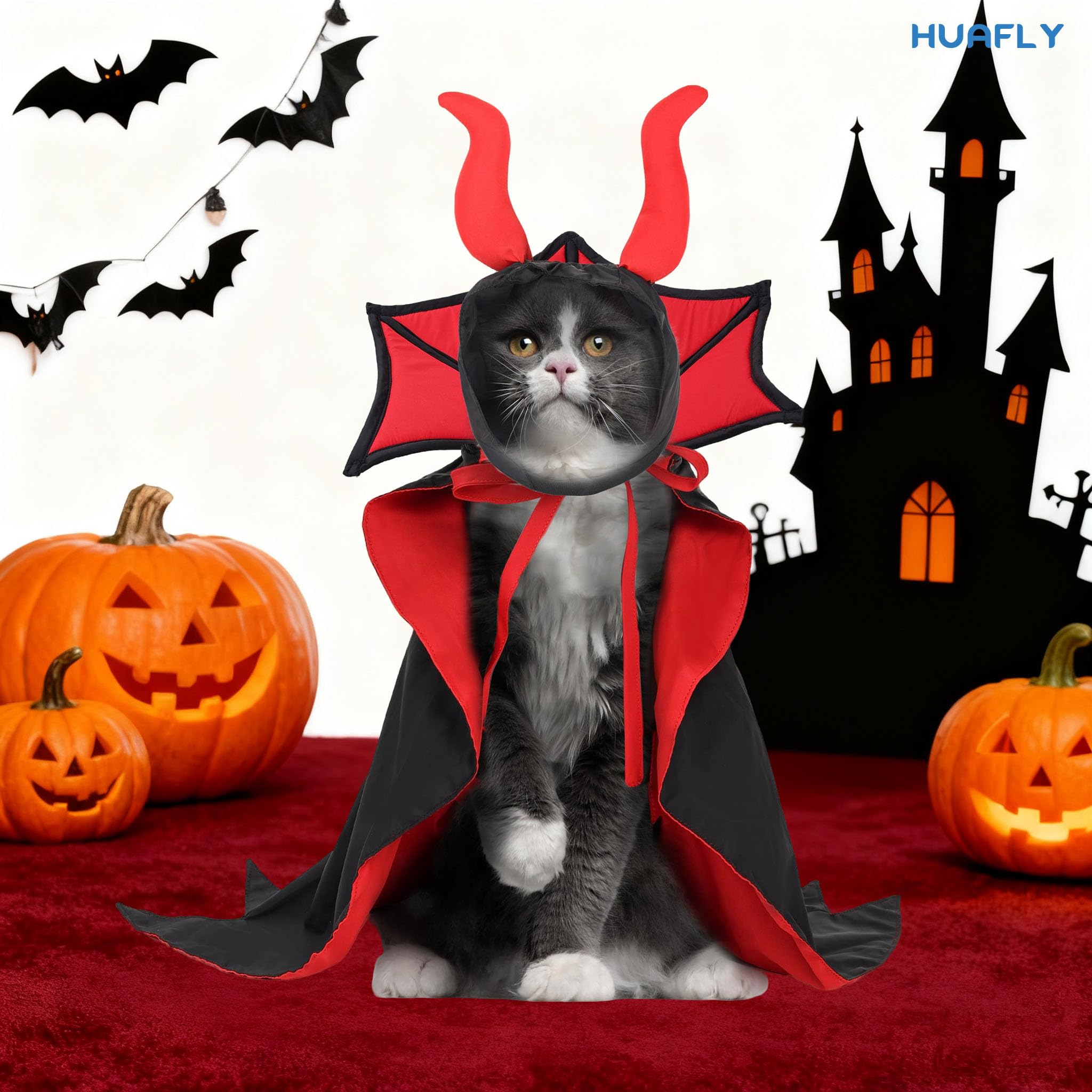 【 Unique Design 】 The collar of the dog vampire costume features a thickened composite cotton design, enhancing its three-dimensional effect. And the classic red and black color scheme, unique design make your pet look like a cute vampire/devil elf, both fun and entertaining.