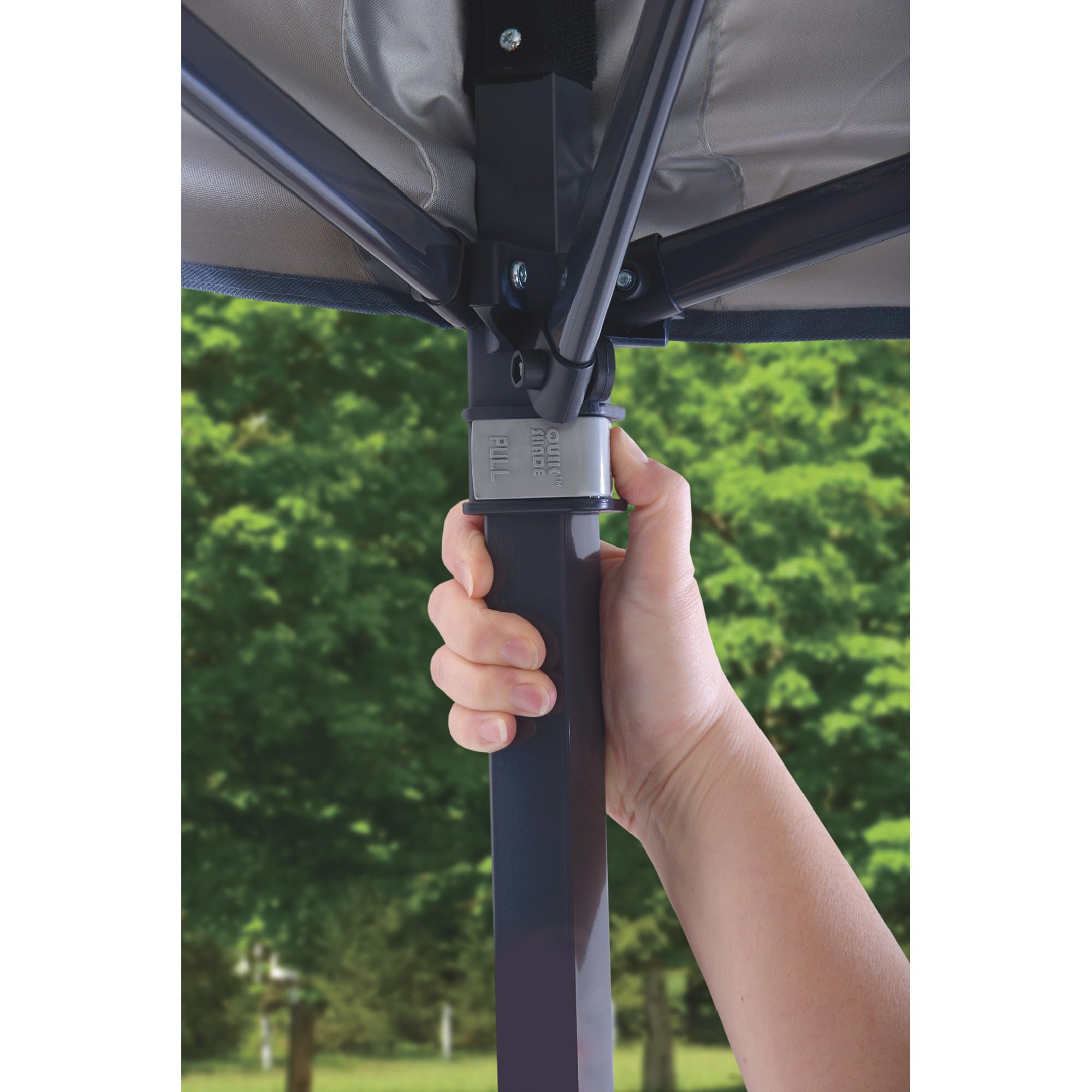 10 ft. x 10 ft. fully assembled straight leg instant canopy provides 100 sq. ft. of shade for 8-12 people with nylon feet protect patio and deck surfaces