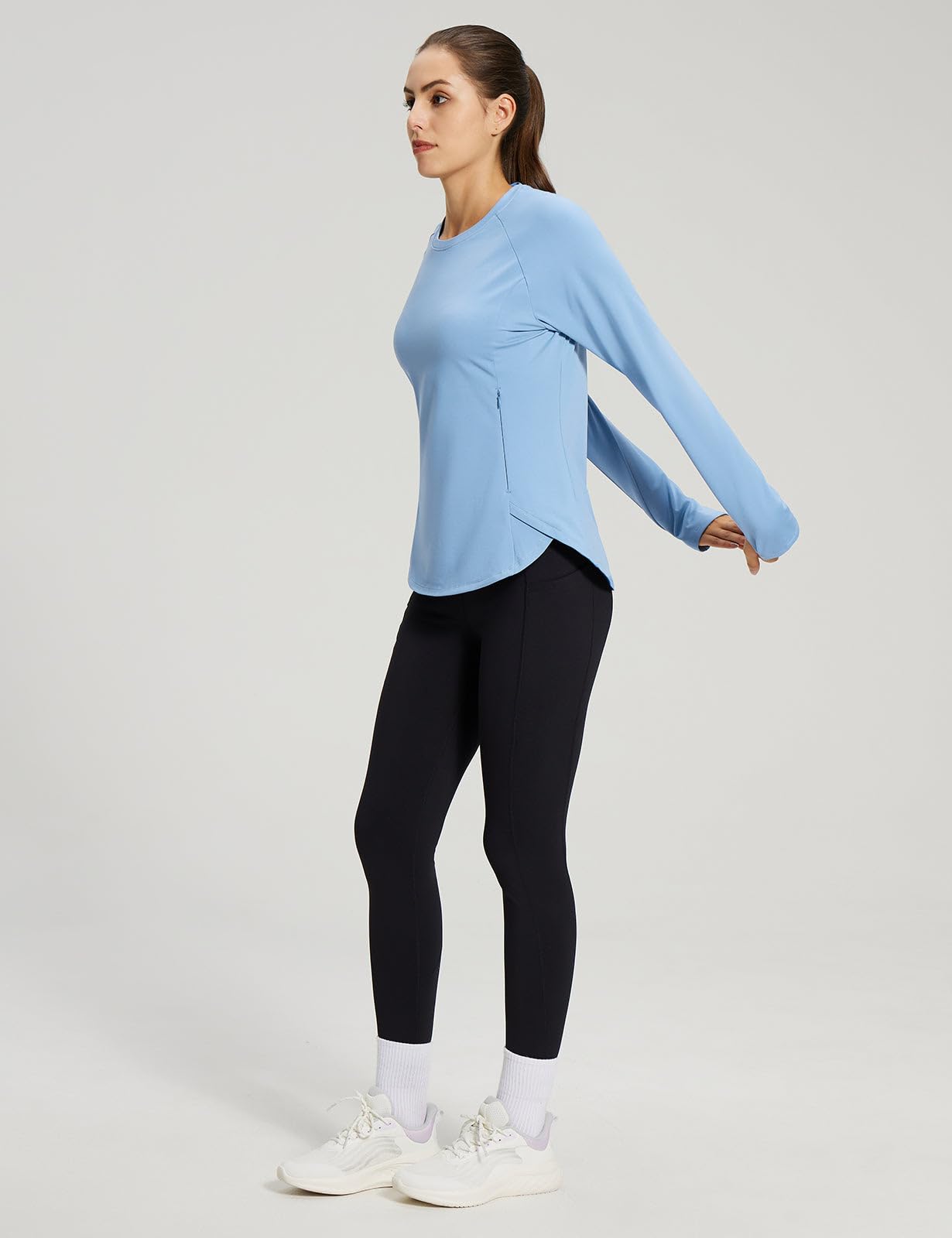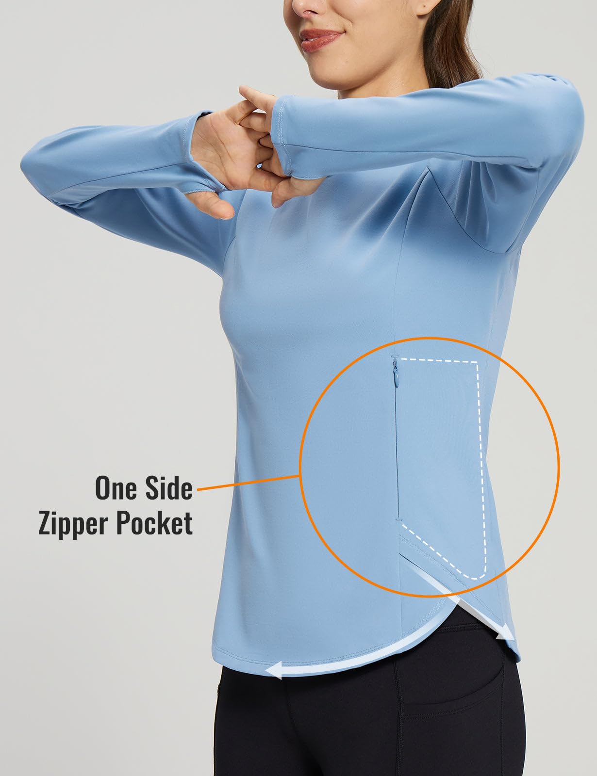 【Fleece Lined Keep Warm】This thermal long sleeve workout top is crafted from high-stretch fleece fabric, providing exceptional warmth and comfort during the chilly autumn and winter. Ideal for temperatures around 10°C/50°F.