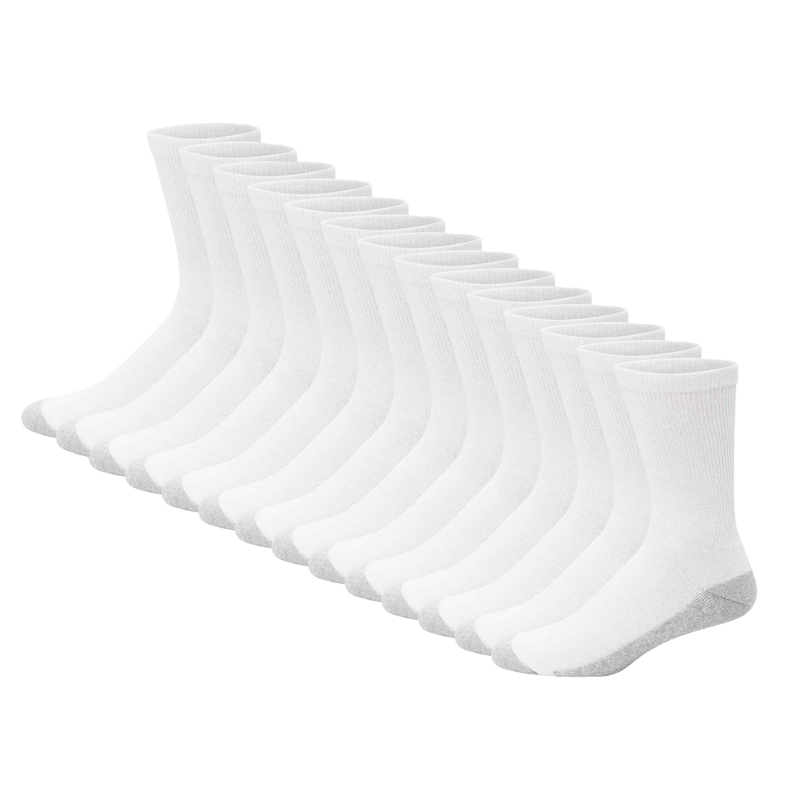 Description Crew socks made with cotton for all over softness, superior fit and ultimate durability.