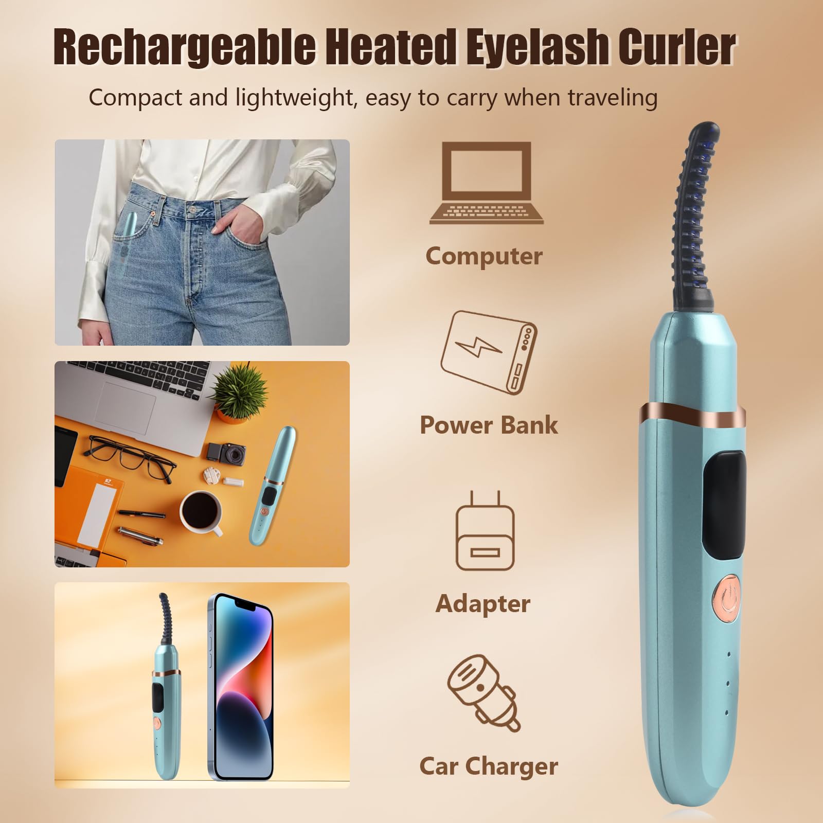【A Perfect Gift】 Heated lash curler its compact, lightweight design makes it ideal for stowing in a handbag or makeup case, ensuring convenience without taking up much space. Plus, its stylish packaging makes it a perfect gift for various occasions like Mother's Day, Thanksgiving, Christmas, anniversaries, and birthdays.