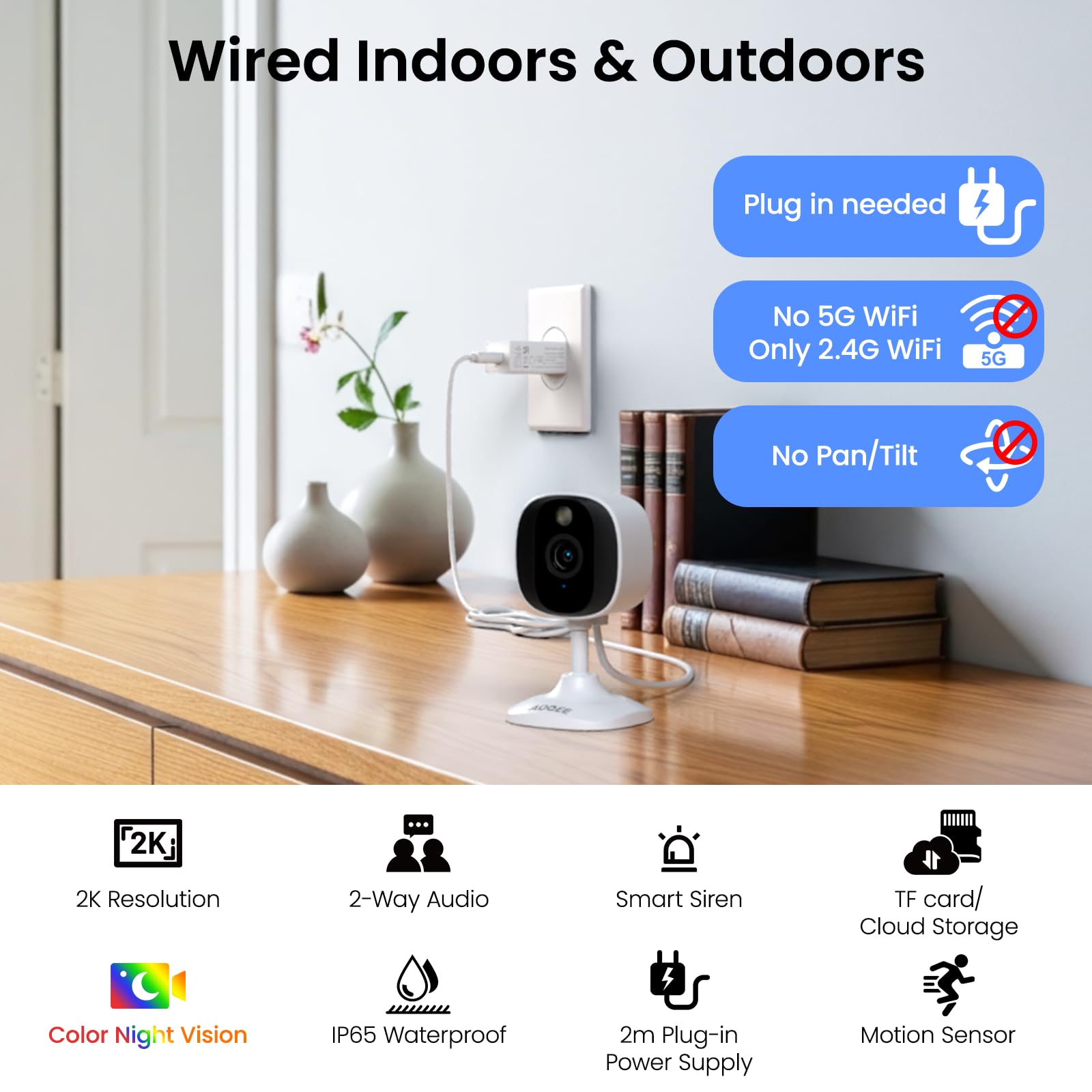 【2K Resolution & Color Night Vision】This 2K Ultra HD security camera is designed for indoors and outdoors. You can choose to install indoor and outdoor cameras for home security in the kitchen, living room, bedroom, baby room, yard, garage, etc. You can not only capture high-definition surveillance footage through the security camera outdoor during the day, but also see colorful images at night. The outdoor camera provides comprehensive and multi period services for your home security.