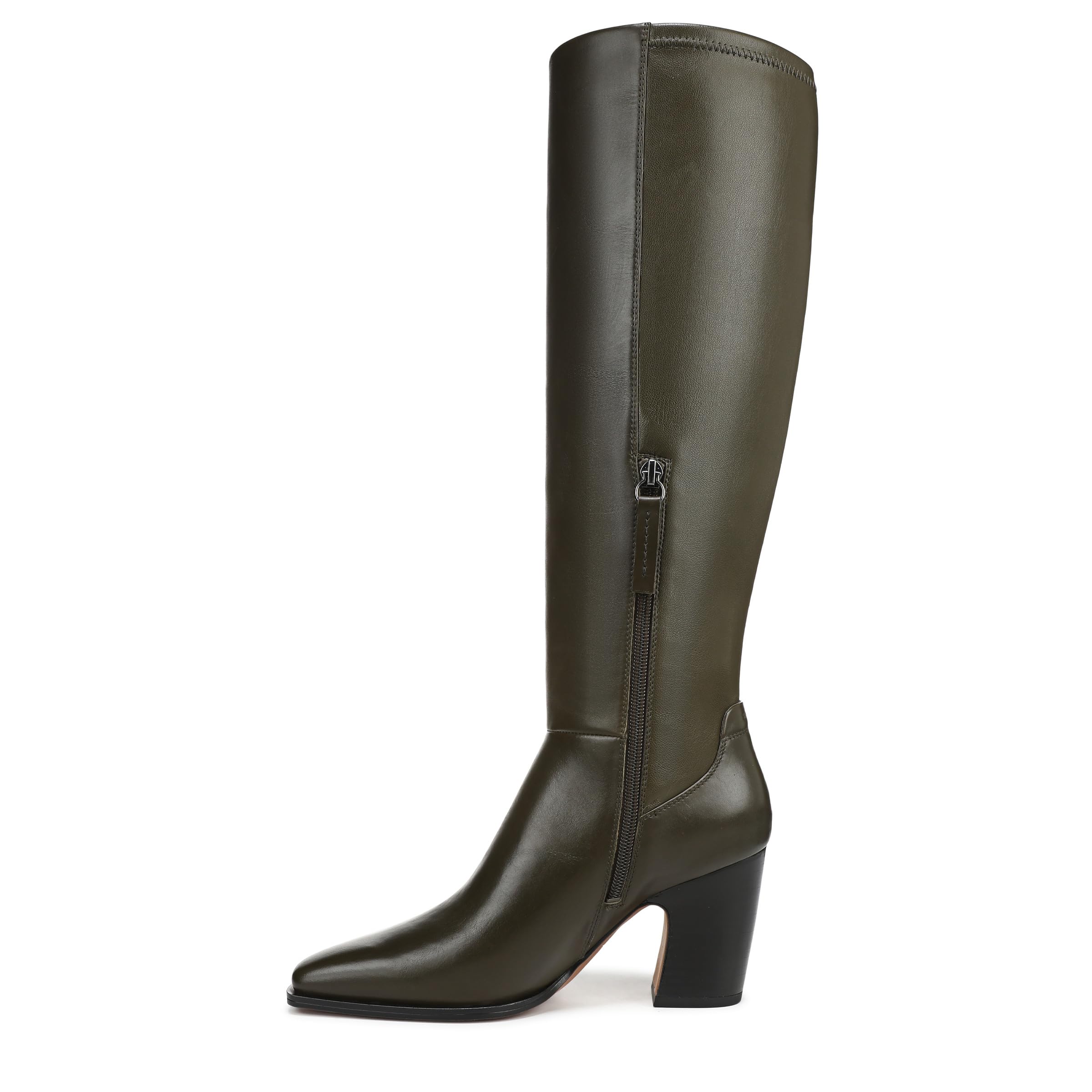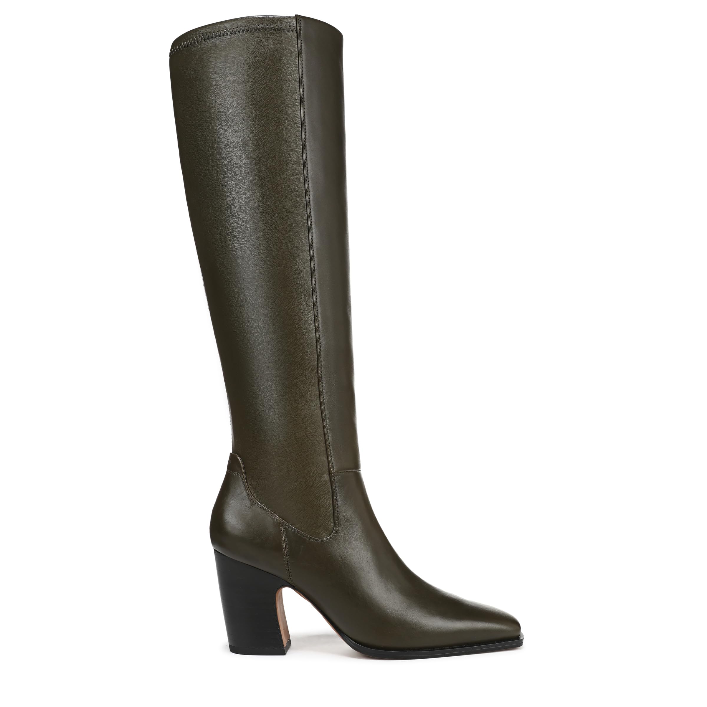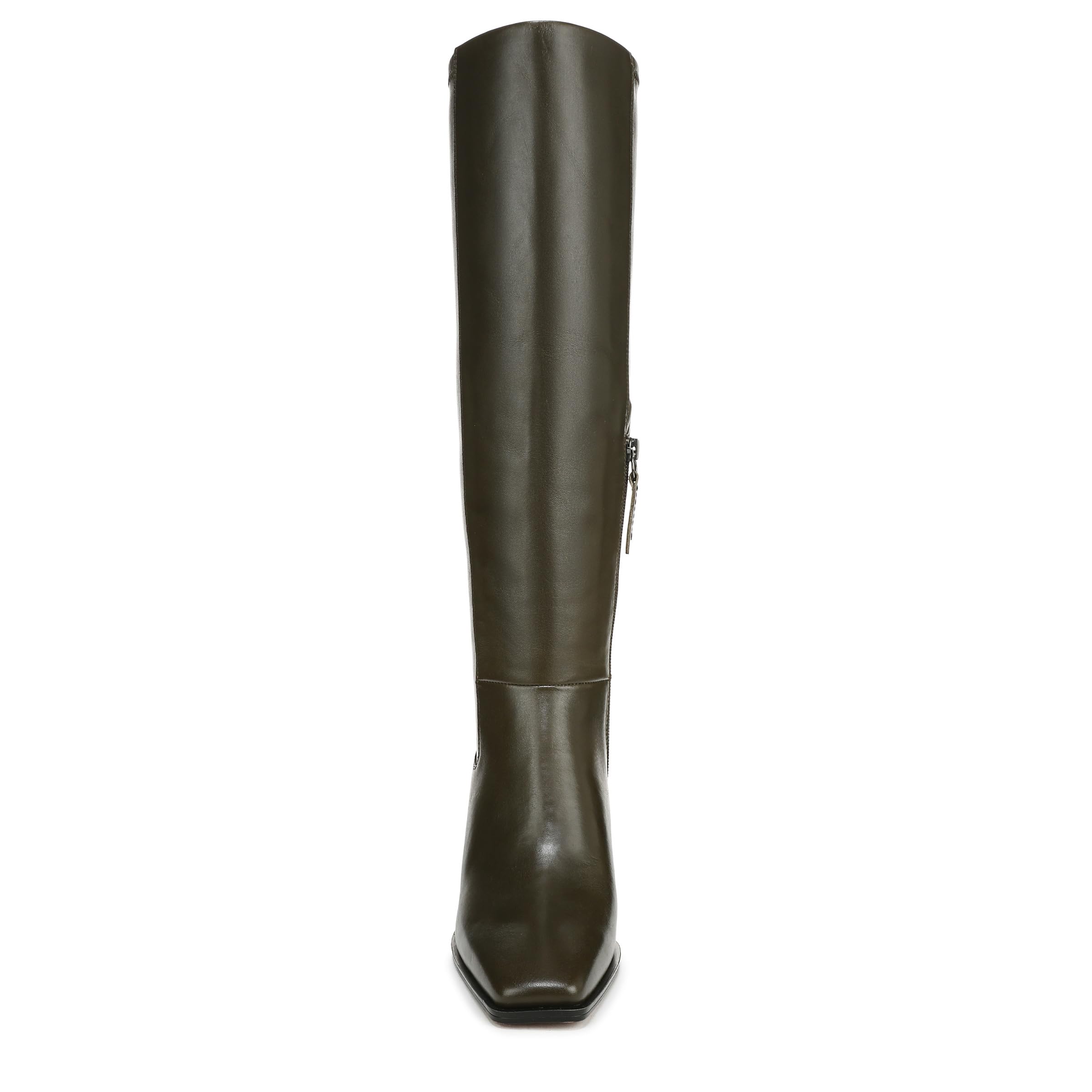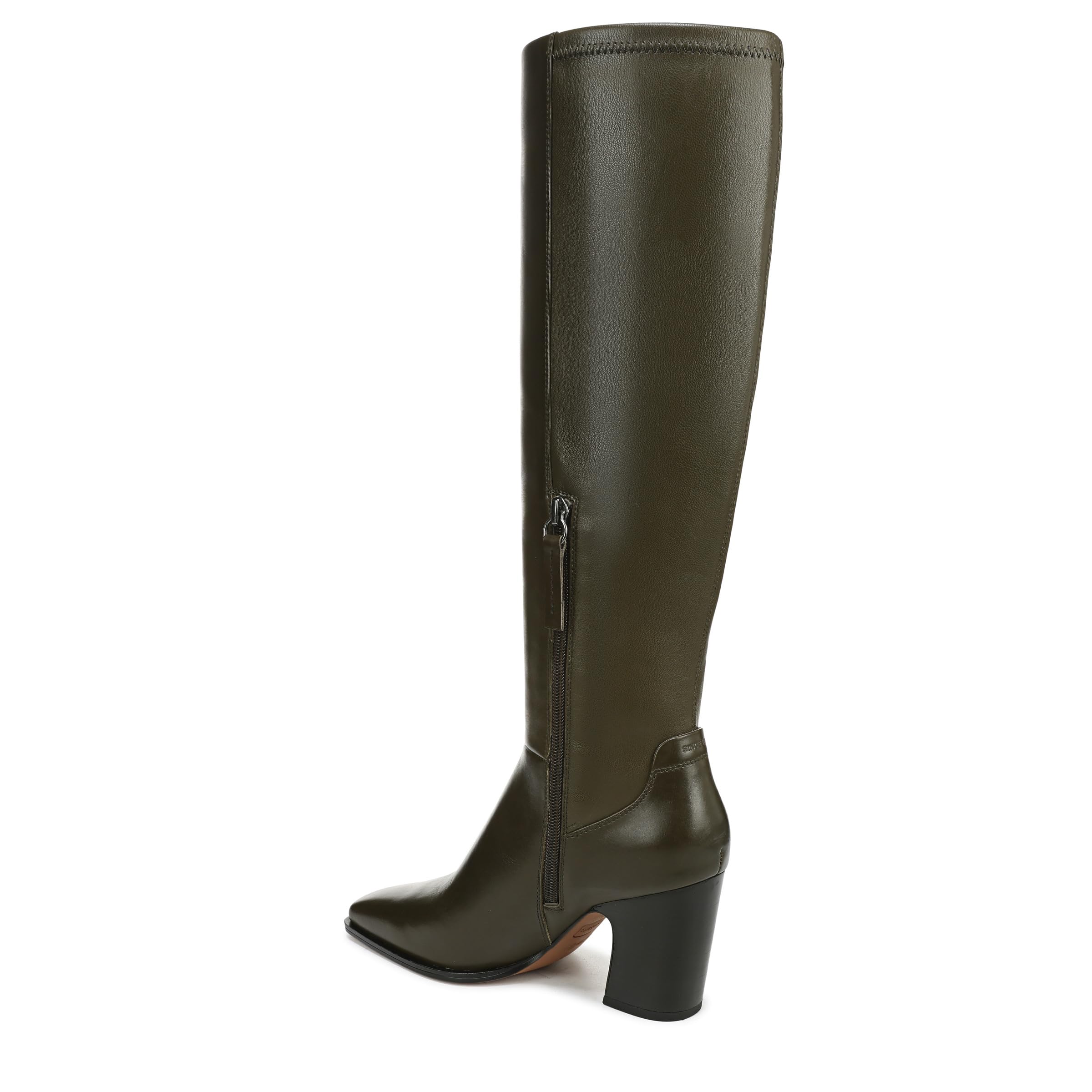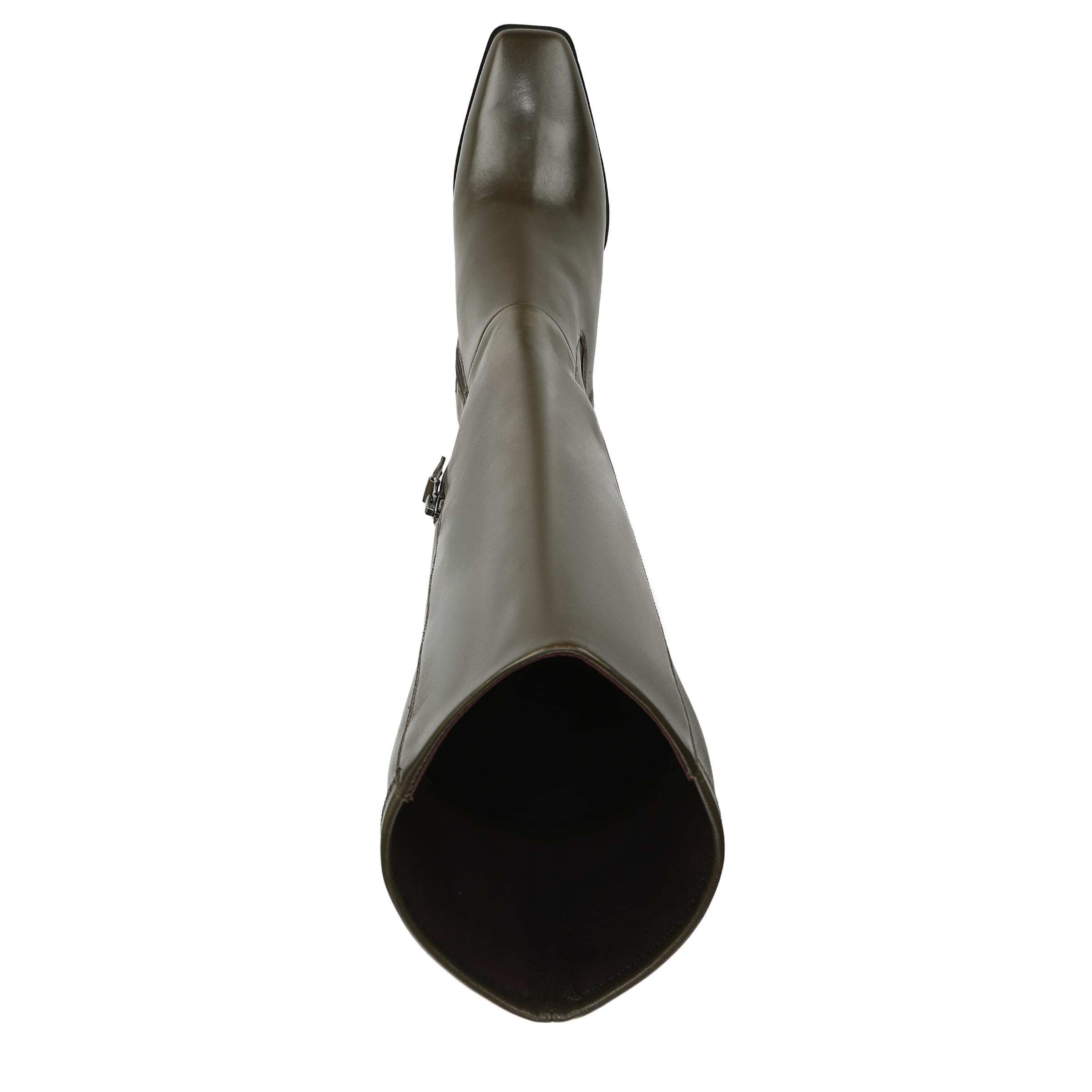Description These western inspired boots are a truly stunning addition to your wardrobe. Leather upper. Side zipper closure. Square toe. 13.3 inch boot leg circumference, 15.3 inch shaft height. 3.1 inch block heel.