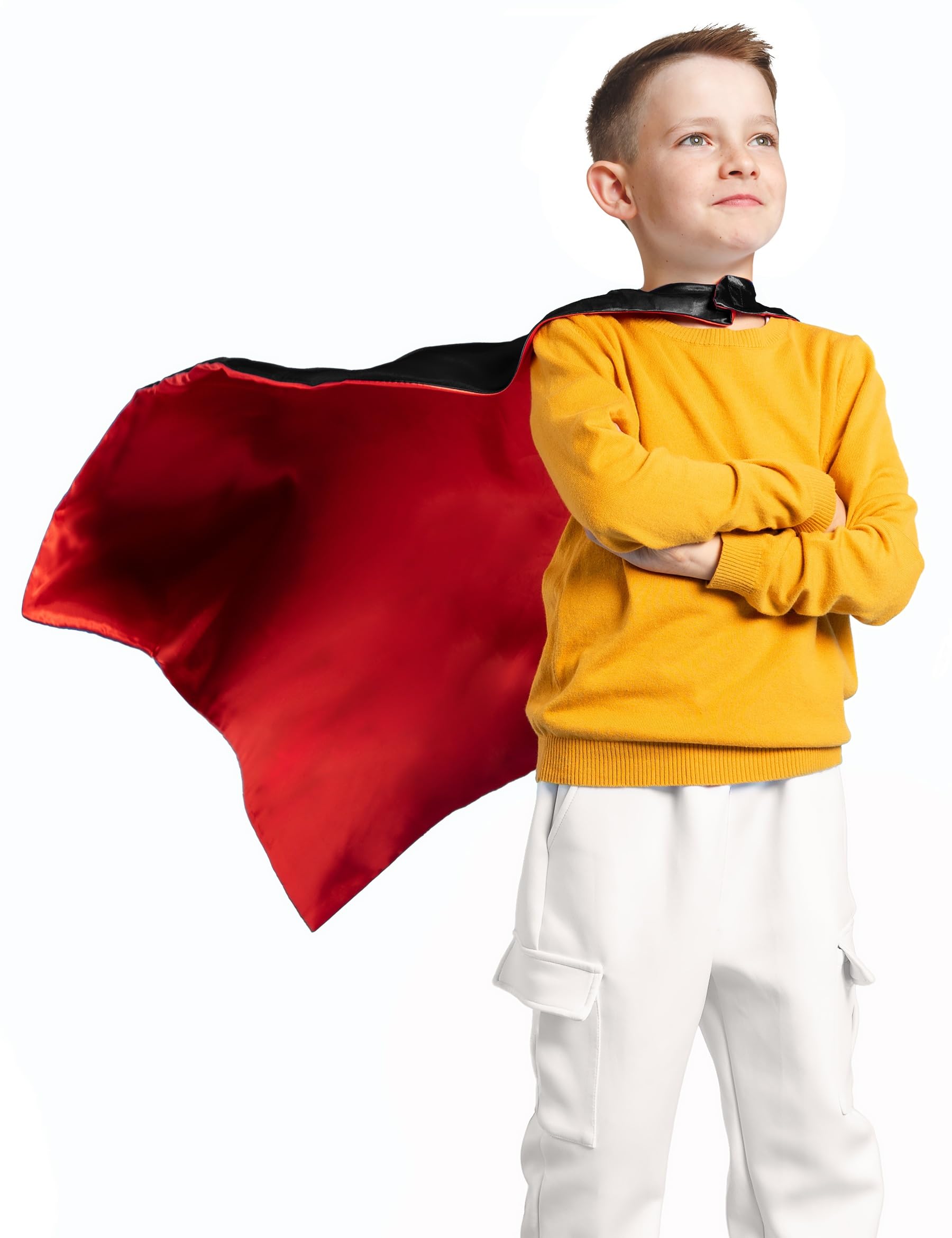 Description Children love their superheroes and nothing excites a kid more than pretending to fly through the air like Superhero. After kids wore our capes, they would imagine to fight with robber and save our beautiful world. 27.5 x 27.5 inches in size, suitable for children aged 3-12 years, with an elastic band on the felt masks that can be adjusted for the perfect fit. Made of soft and safe glossy satin material, these capes are comfortable. The best part about our capes is that they are reversible with dual colors, providing two different designs to choose from. Kids can also unleash their creativity and imagination by drawing, printing, or customizing the capes however they like. These capes make excellent gifts for kids to cosplay in Birthday Party, Halloween Dress Up Costume, Christmas Party, Costume Party, Team Spirit Building, Vacation Bible School, Role Pretend Play, 100th day of school celebration, Festivals, Themed Party Costumes, Career Themed Party, Everyday Play, and so on. With a variety of superhero designs to choose from, kids can play a different superhero every day of the week. These capes stimulate imagination and creativity, allowing kids to explore new worlds and have fun with their friends. Our Superhero Capes and Masks are the ideal presents and perfect party favors for kids, great for birthday goodie bags, incentives for students, and ornaments for parties. For the best look, all capes should be ironed on low heat before use and hand washed in cold water and air dried. Masks can be wiped clean with a damp towel. Order now and let your little superheroes save the day! Size: 27.5Γ27.5 inchοΌPerfect for 3-12 years old kids Packing ListοΌ 1* Double-Sided Colors Superhero Cape 1* Superhero Mask