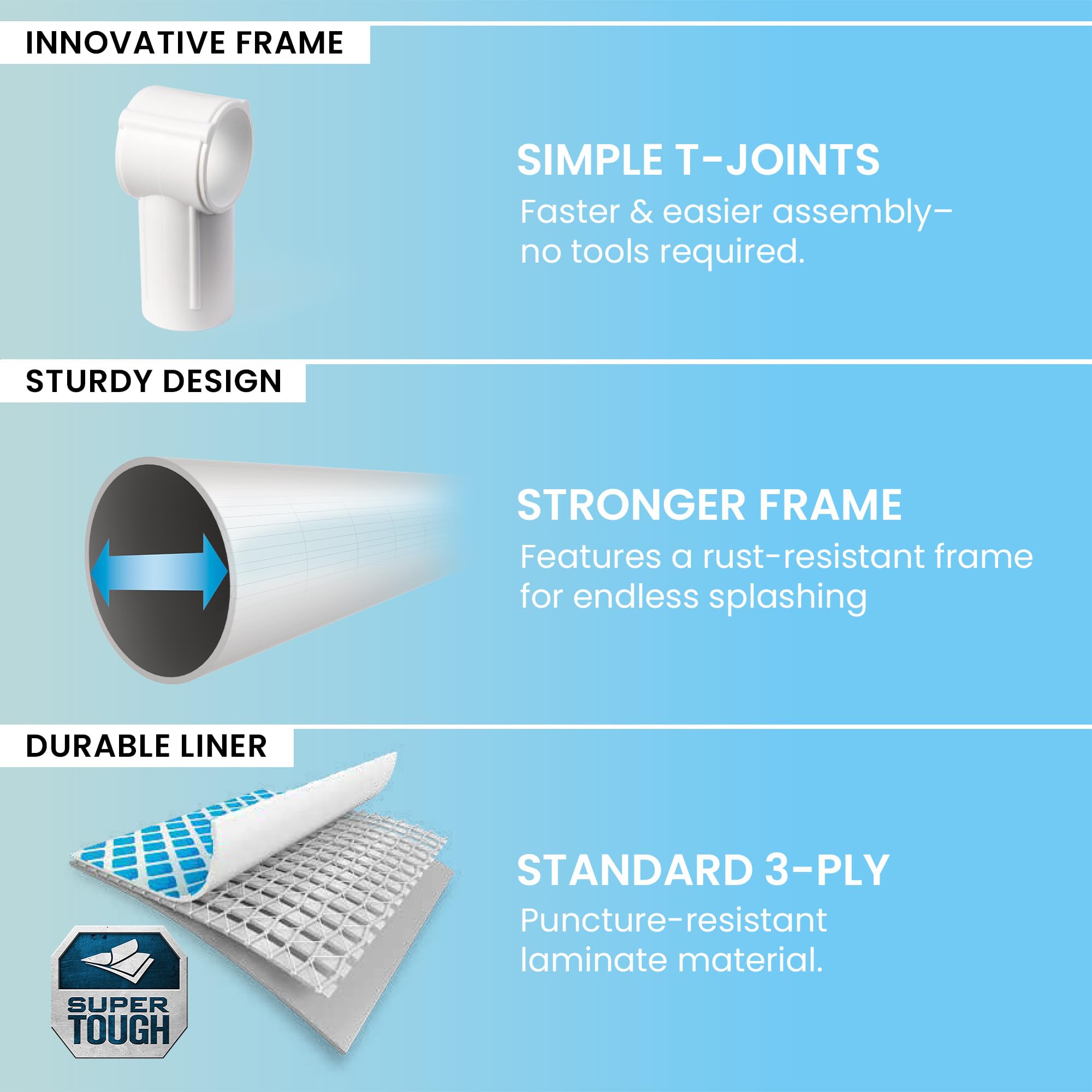 ✔ EASY TO ASSEMBLE – Ready for water in just 30 minutes; spread out on level ground preferably on top of a ground cloth (sold separately), setting the metal frame with our innovative composite T-Joint design makes assembly quick and easy with no tools required.