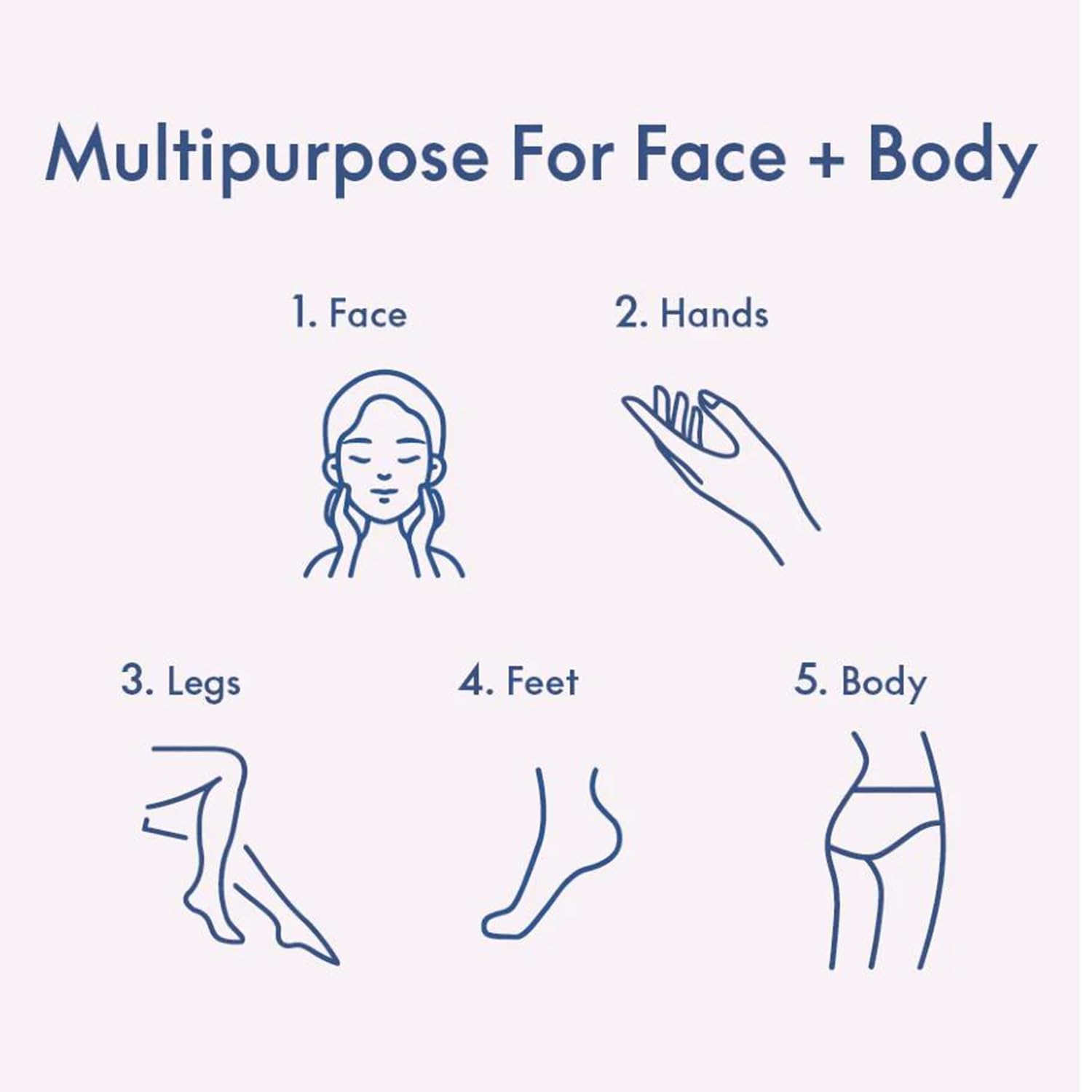 Use this face and body lotion as a hydrating face cream, foot repair cream, cuticle soothing cream, or simply as a natural lotion for your whole body. Unlike a regular face moisturizer for dry skin, you can use this versatile cream almost everywhere!