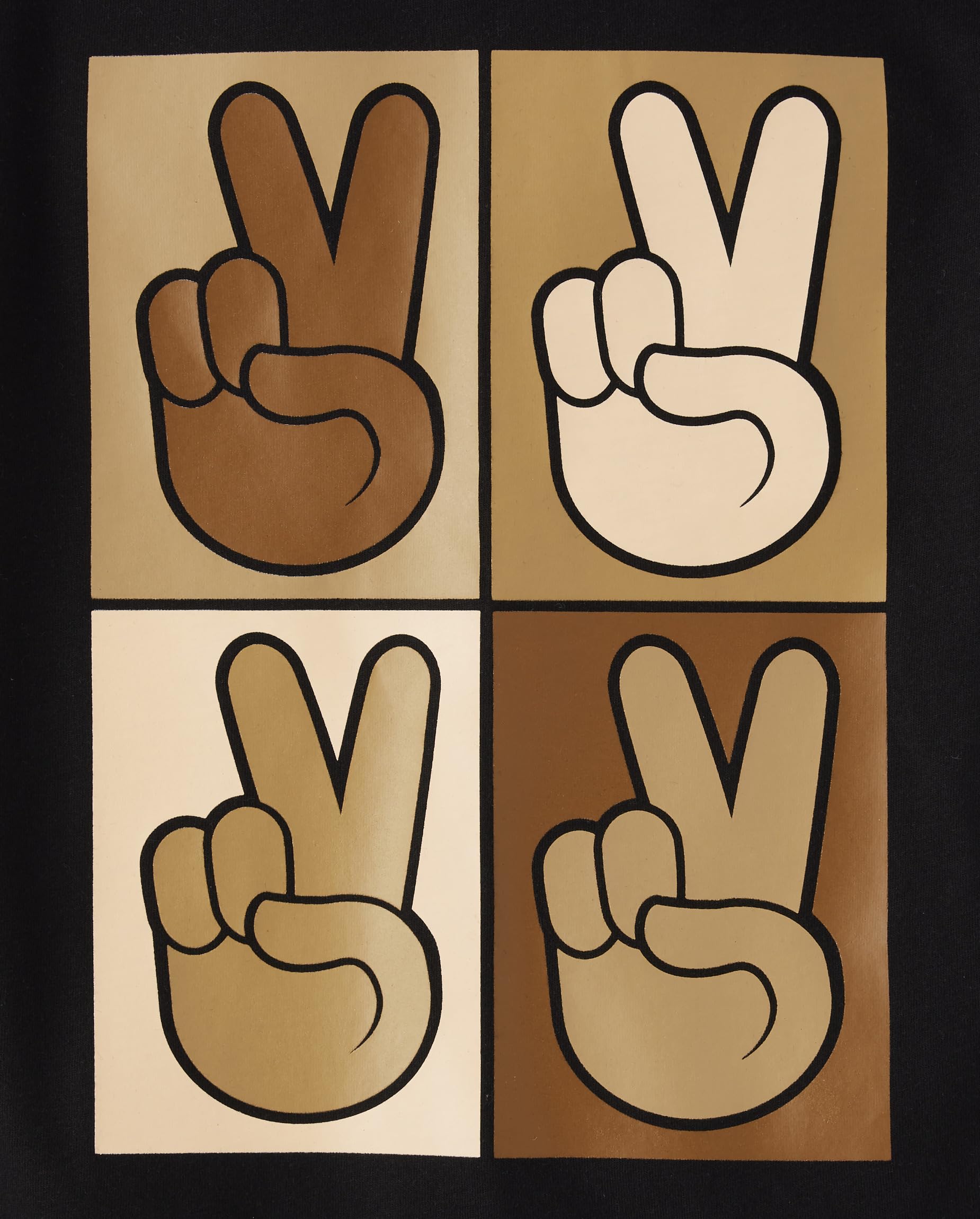 DESIGN — Features short sleeves, rib-knit crew neck, tagless label and peace signs graphic design at front