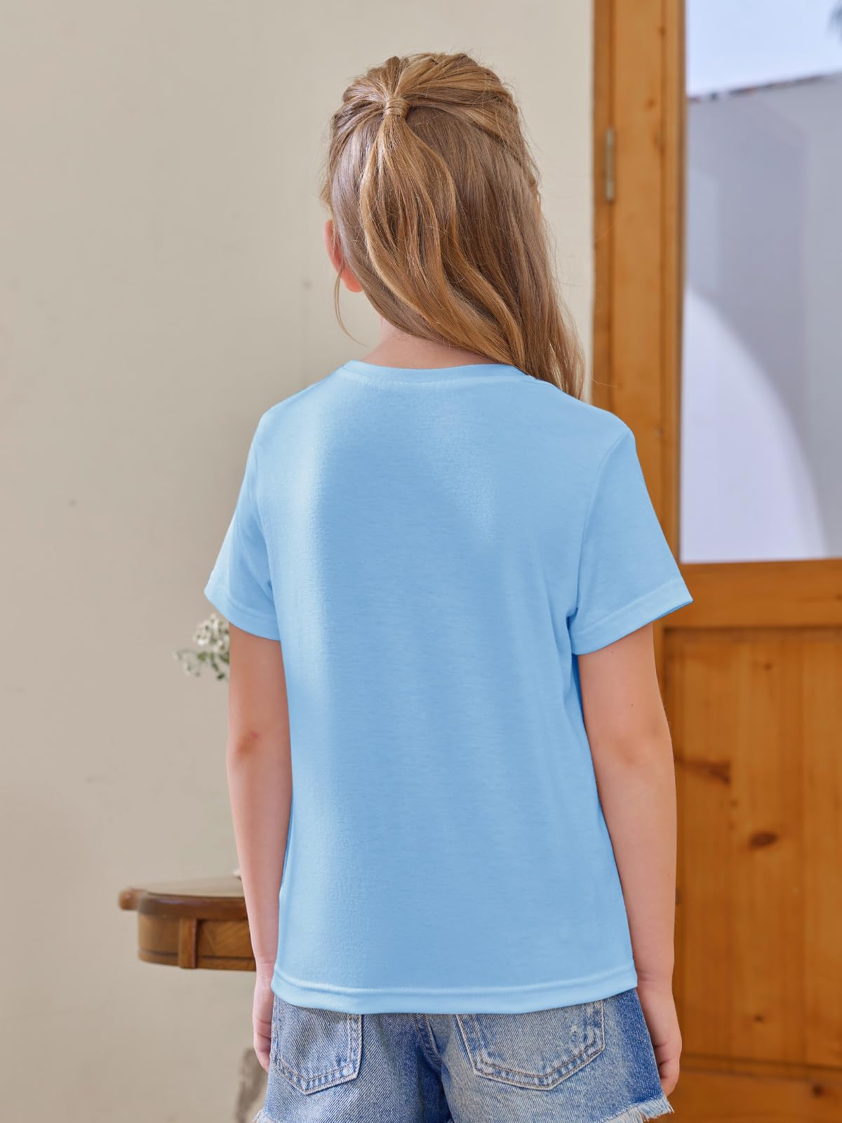 Match: These girls short sleeve T-shirts can be easily paired with shorts, skirts, jeans, overalls, sweatpants, flats and sneakers. Or pair it with a cardigan or jacket in spring and fall. A classic and basic tops that is cute and fashionable and will never go out of style